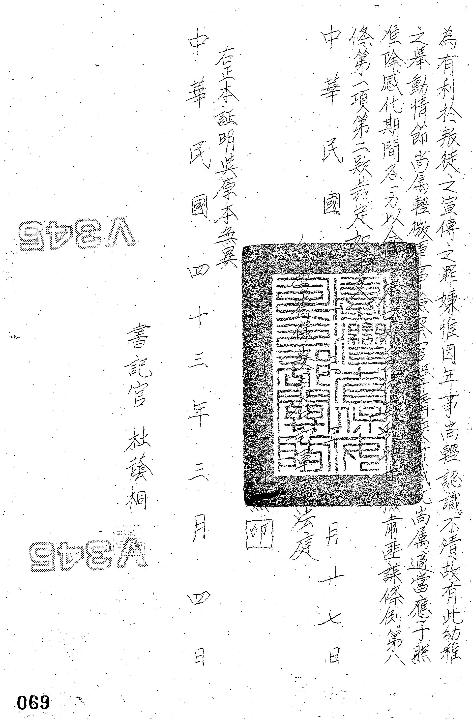 臺灣省保安司令部43年審聲字第0047號裁定書