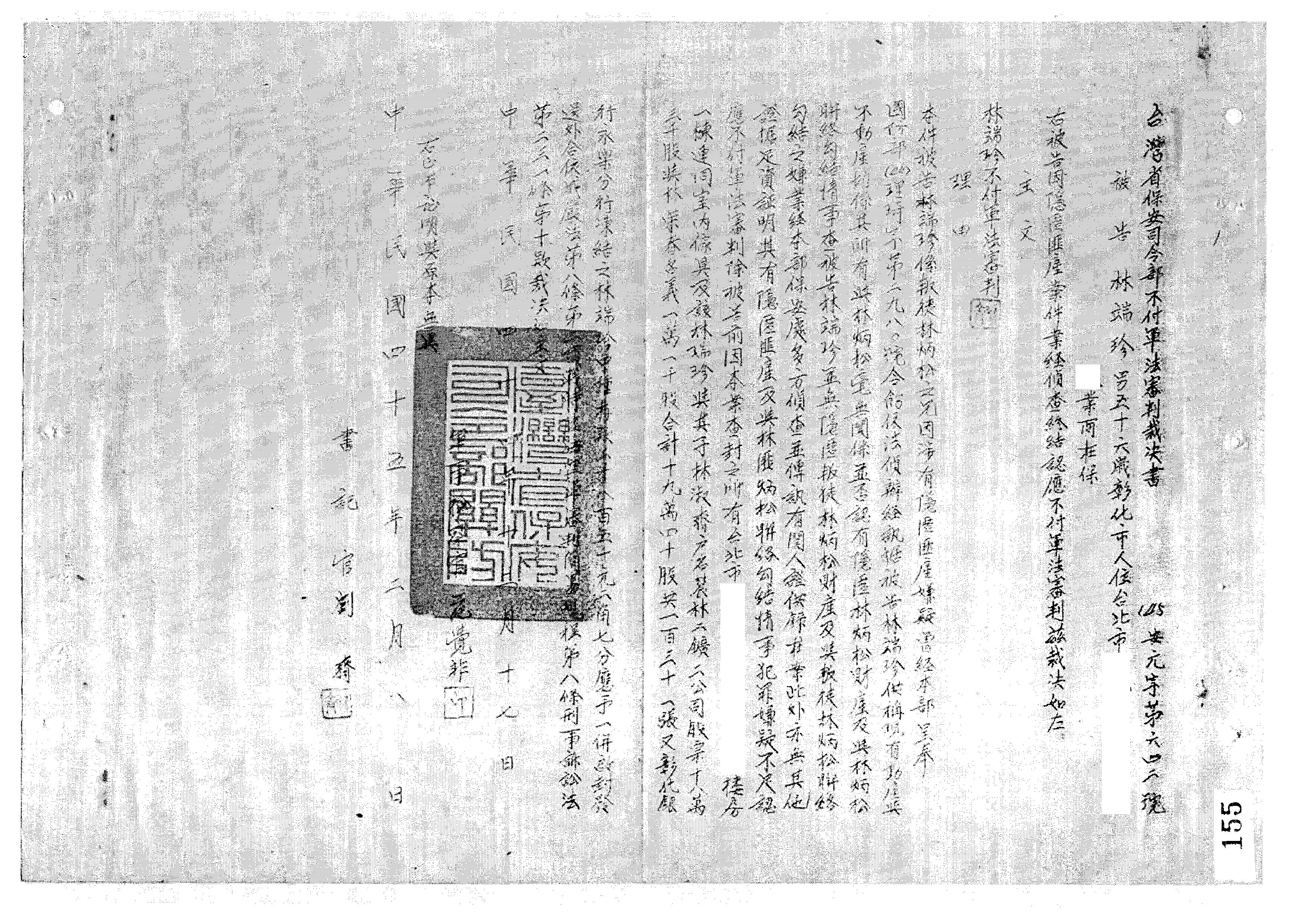 臺灣省保安司令部45年安元字第0642號不付軍法審判裁決書