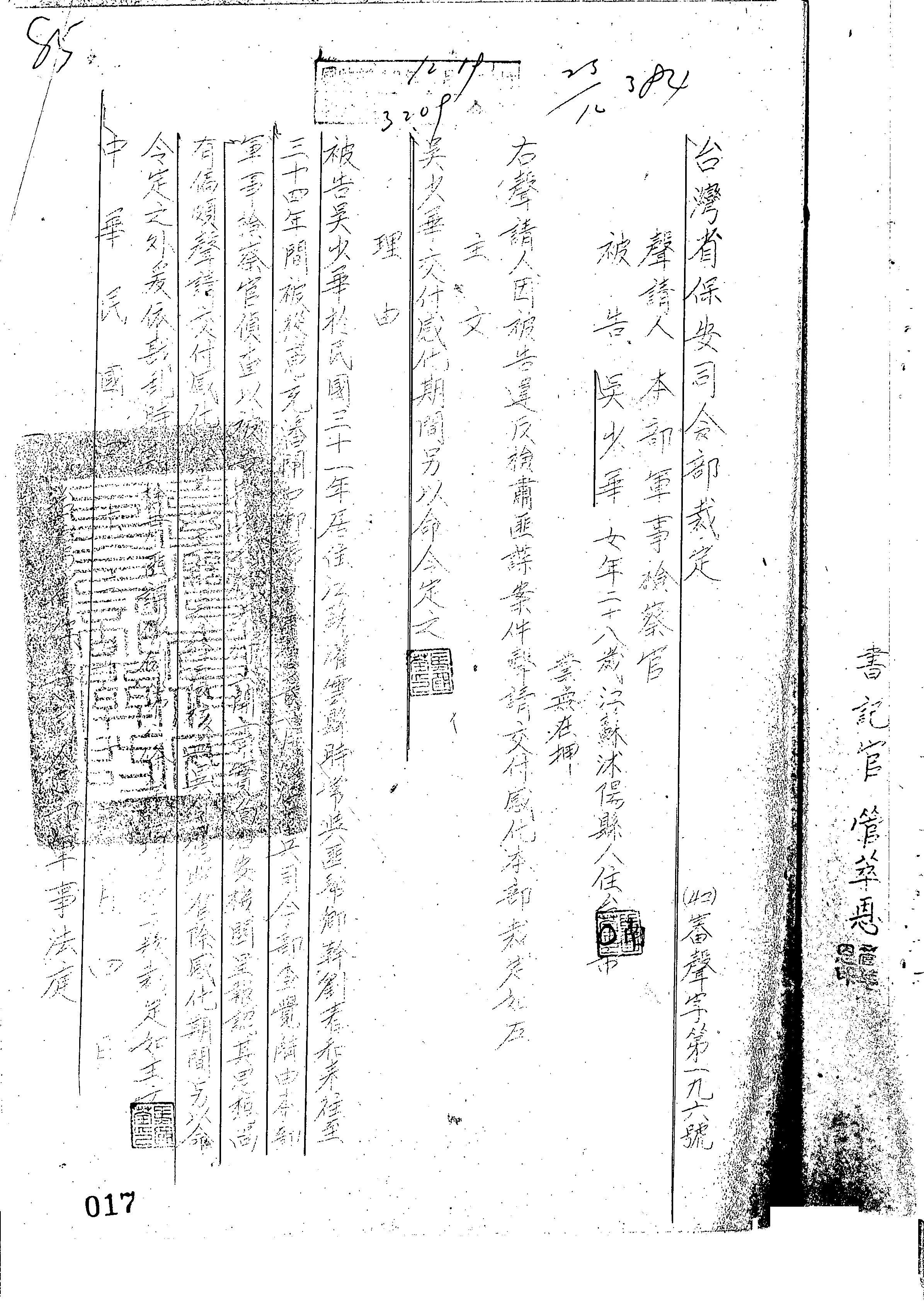 臺灣省保安司令部42年審聲字第0196號裁定書