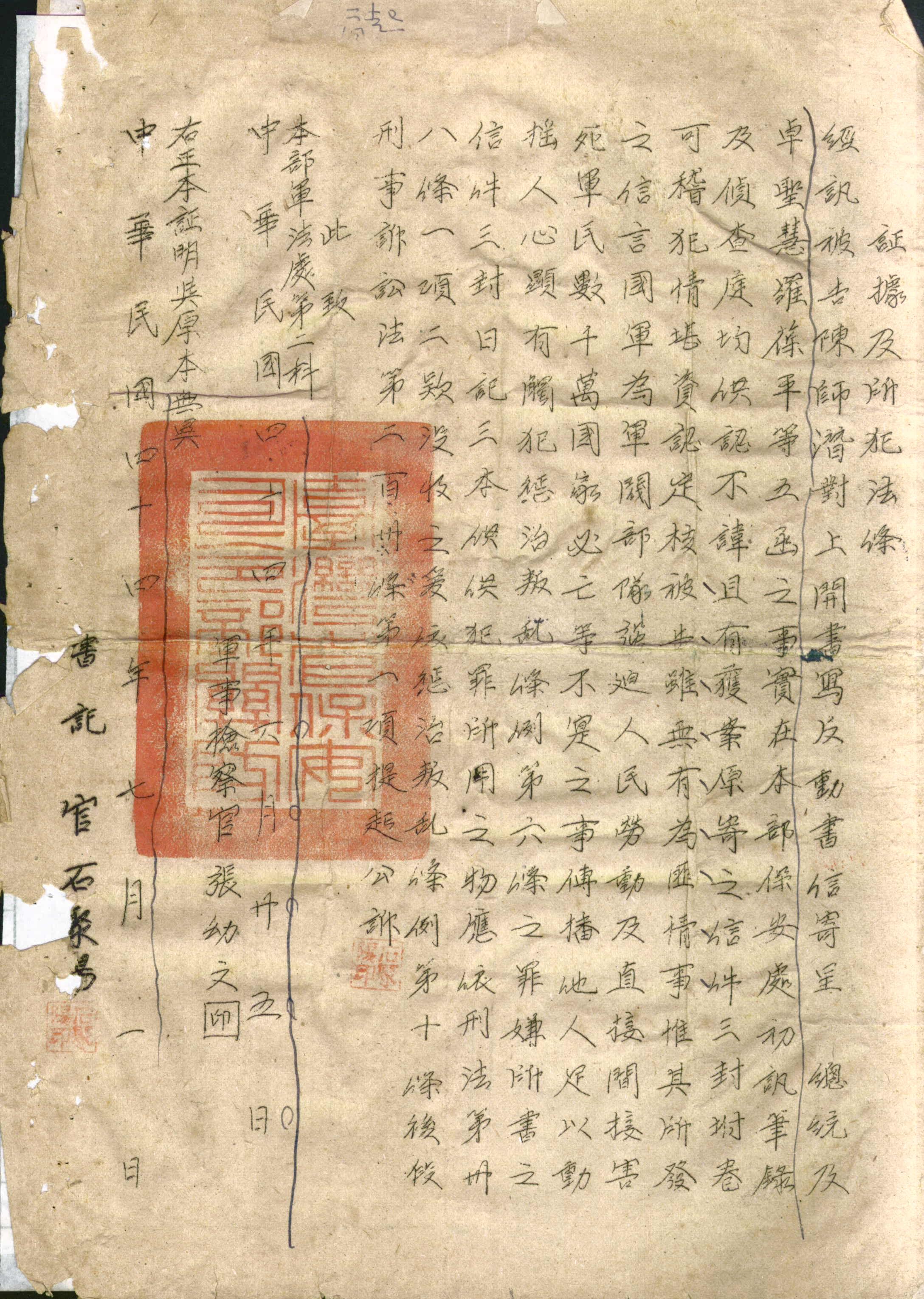 臺灣省保安司令部44年安准字第2590號起訴書