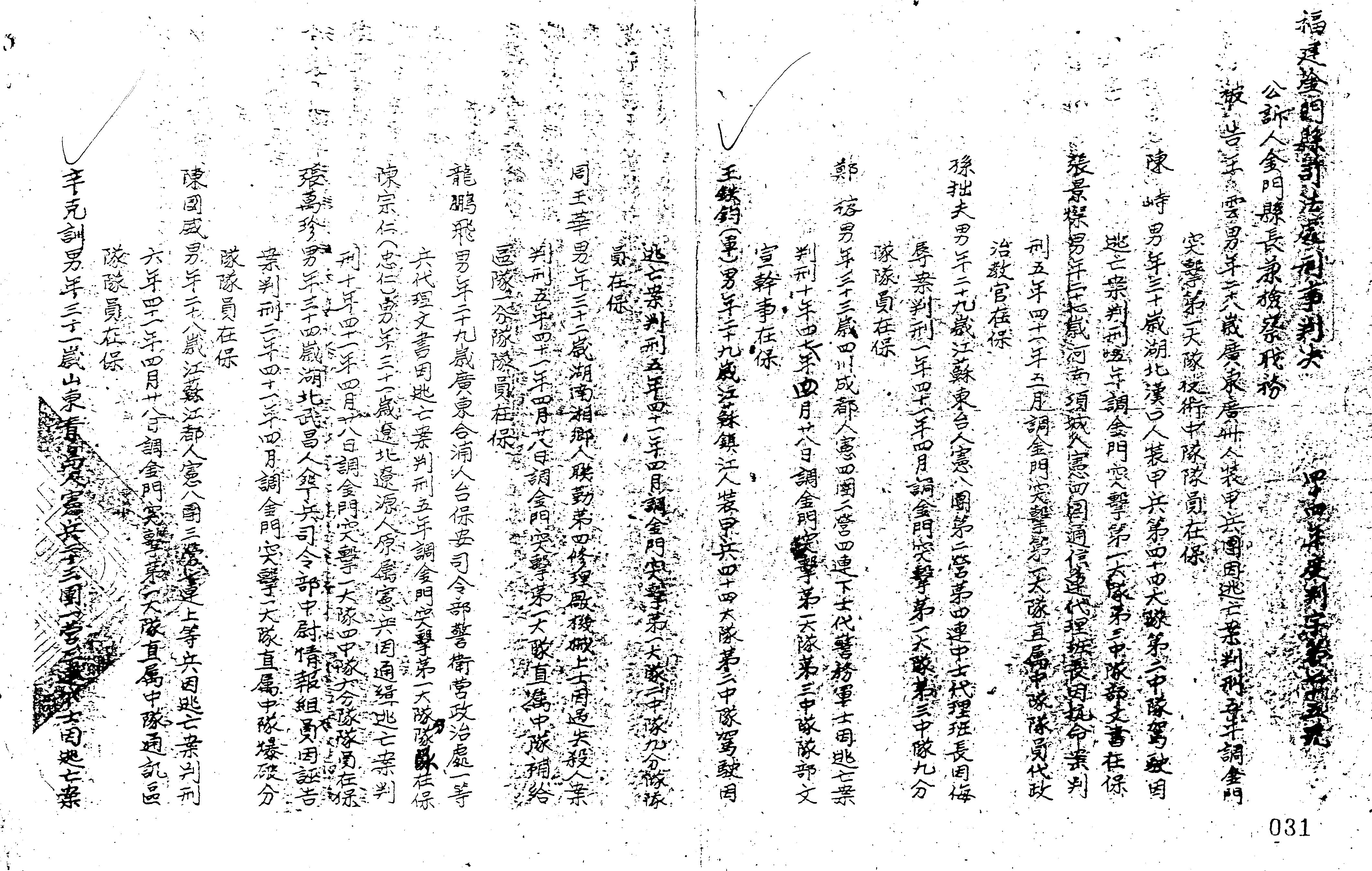 - 審理機關:福建金門縣司法處