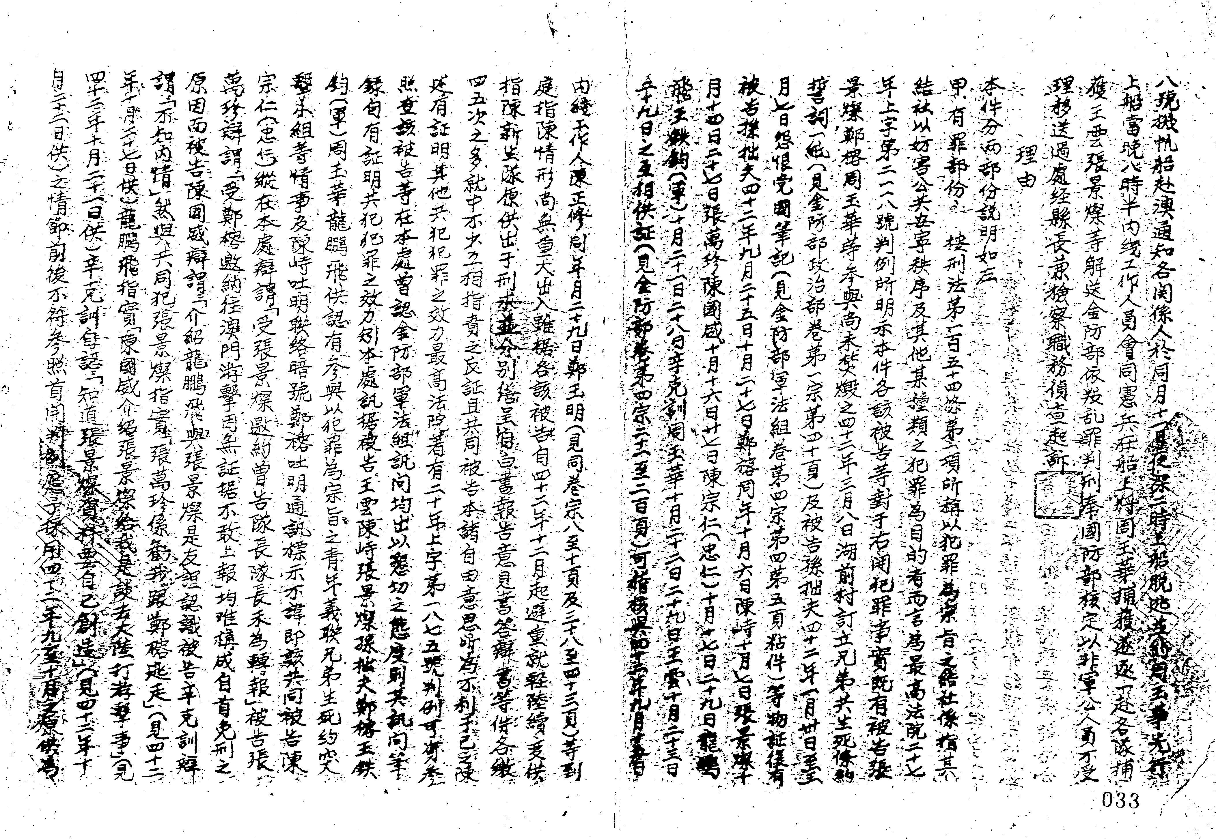 - 法條:縣司法處辦理訴訟補充條例第1條;刑事訴訟法第291條前段、第292條、第293條後段;刑法第28條、第154條第1項、第30條、第57條