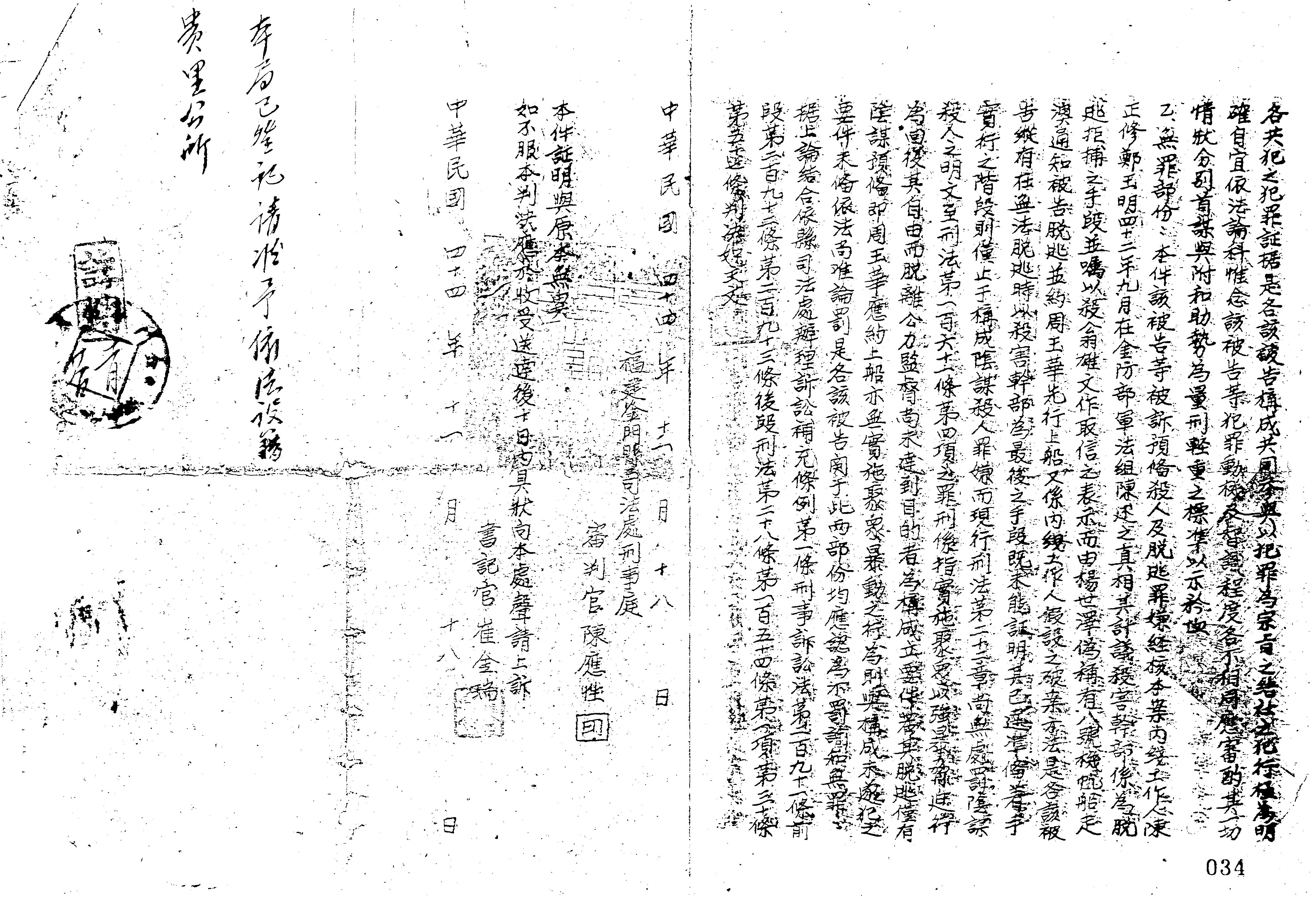 - 裁判書正題名: 福建金門縣司法處44年判字第0075號刑事判決書