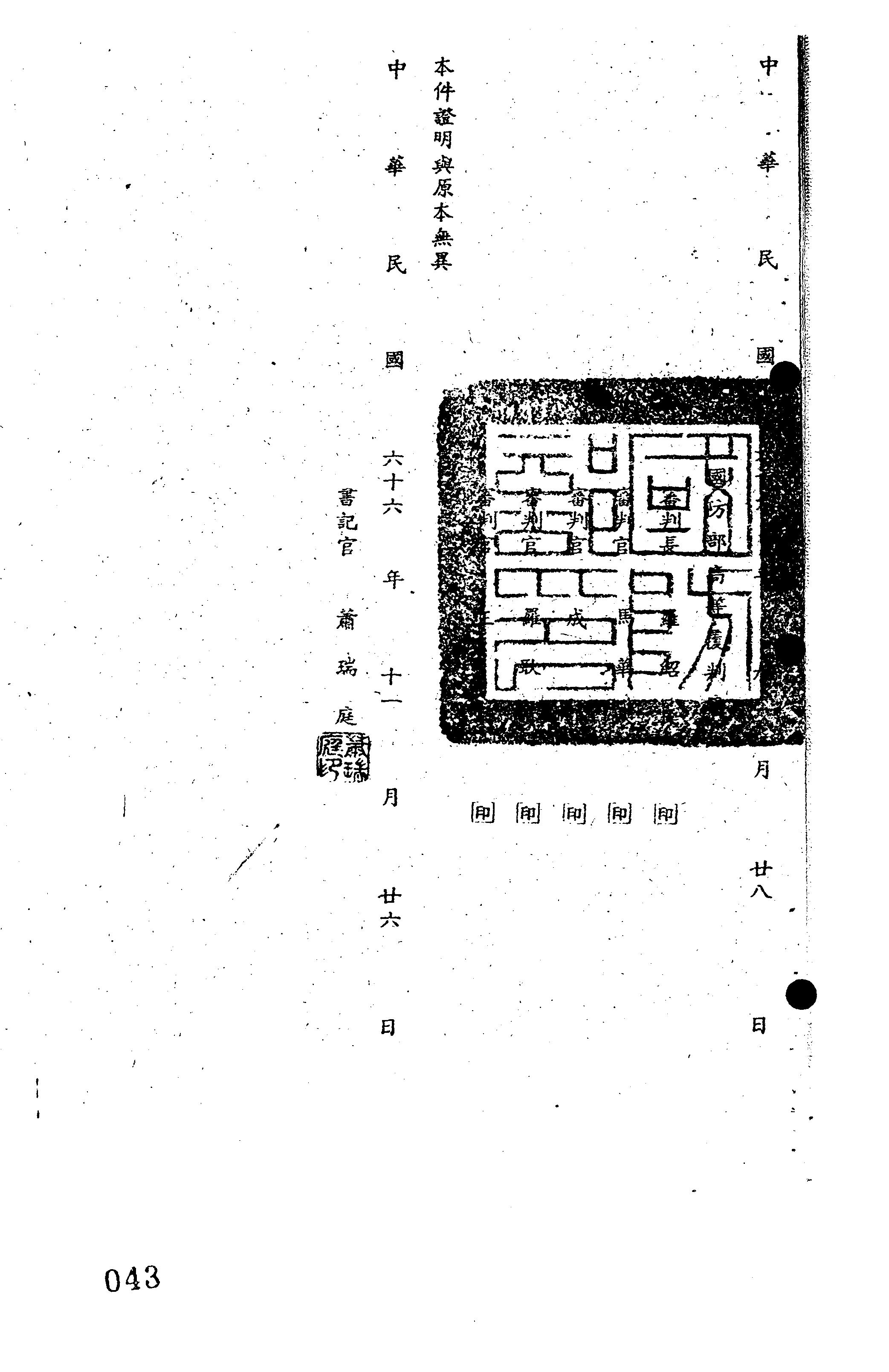 審理機關:國防部