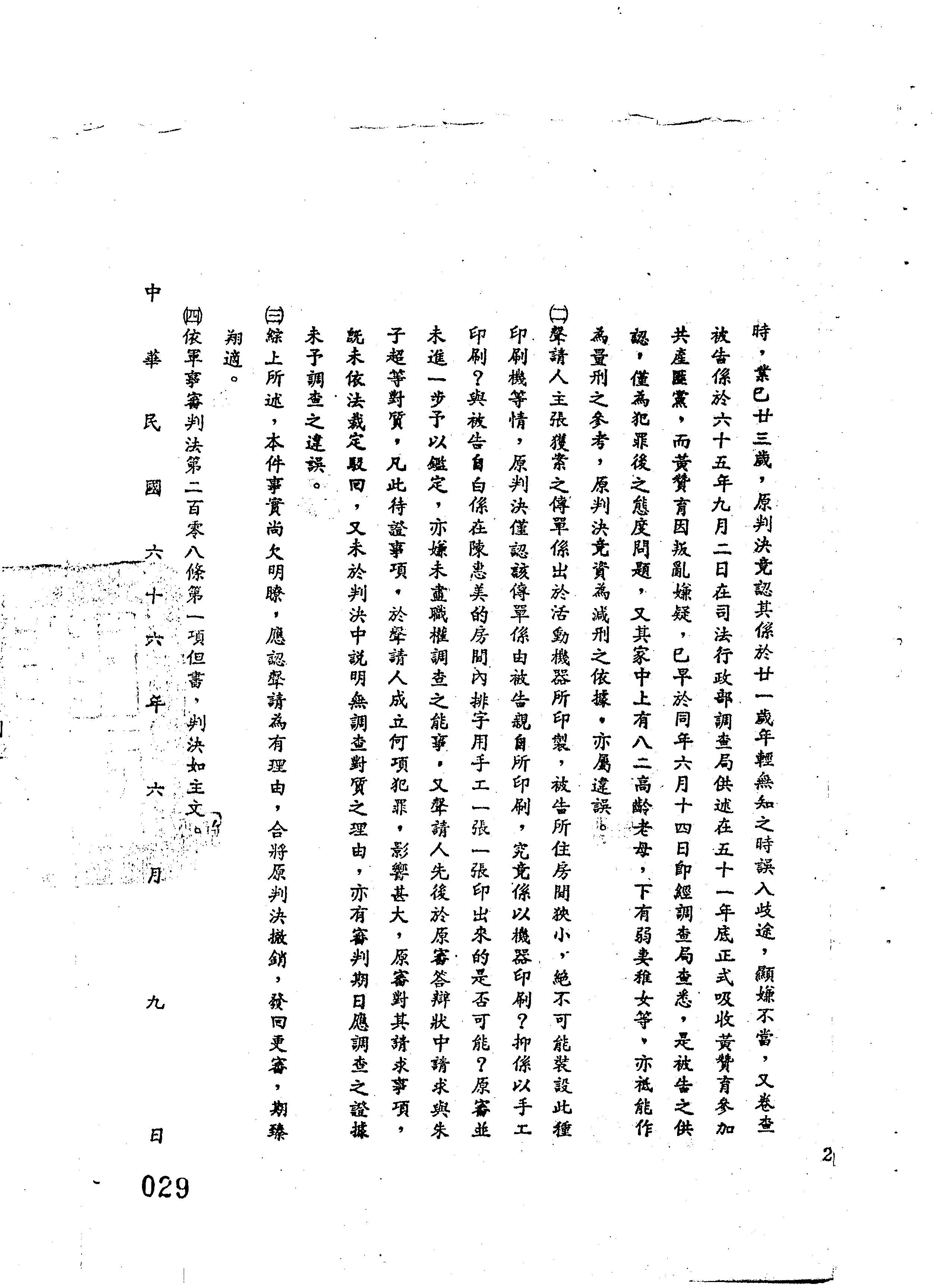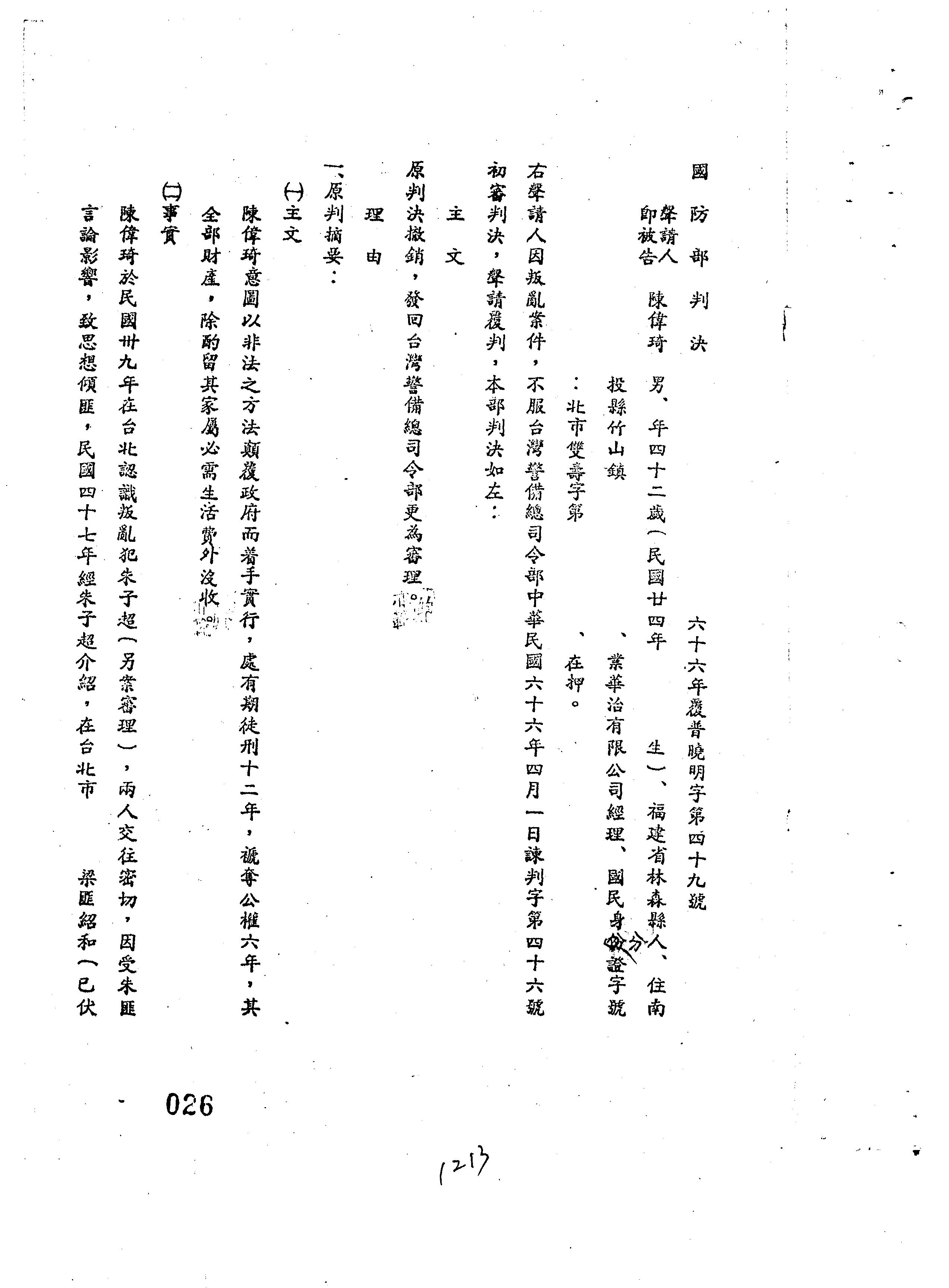 裁判書主文/要旨:原判決撤銷,發回臺灣警備總司令部更為審理。