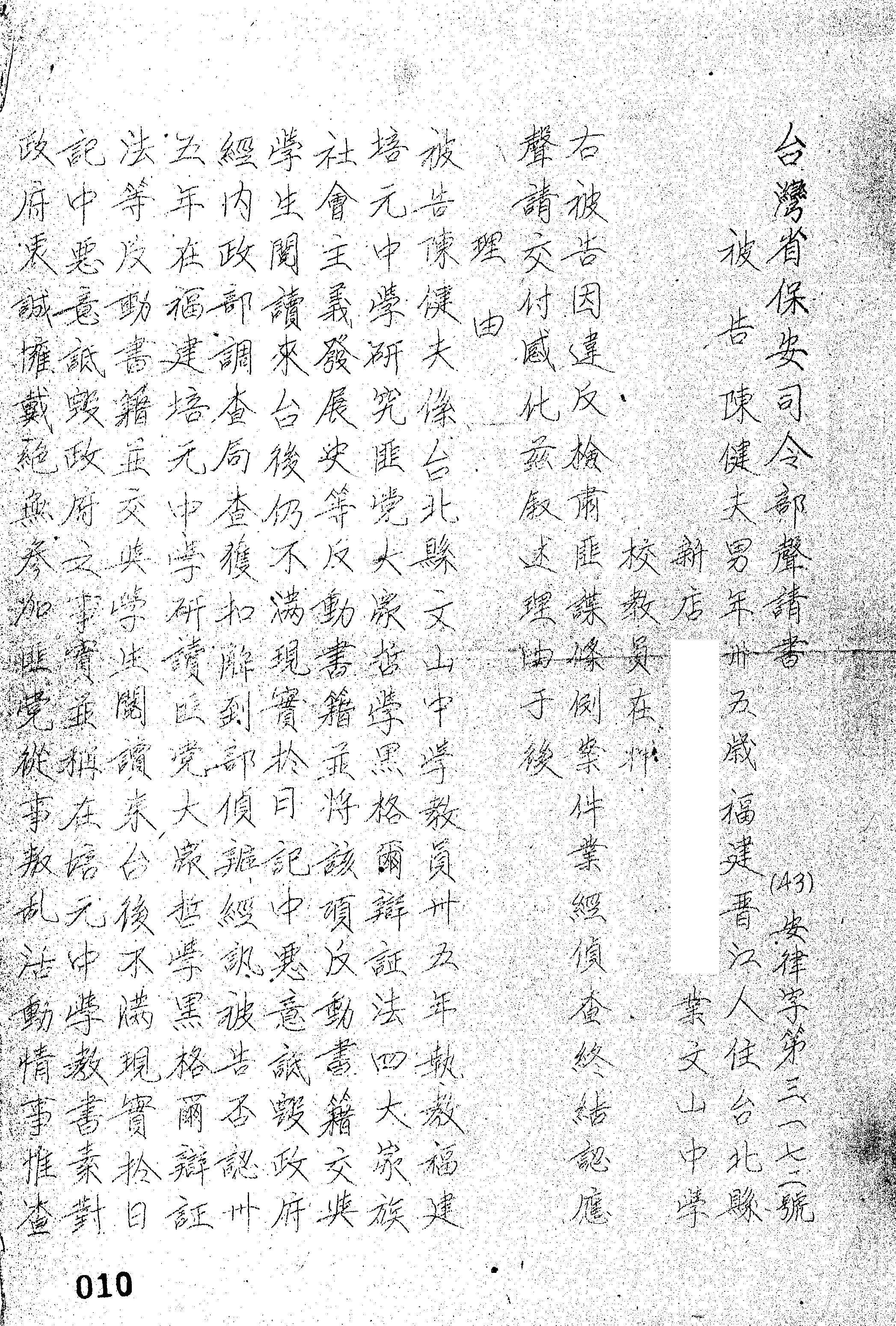 裁判書主文/要旨:陳健夫因違反檢肅匪諜案件經偵查終結認應聲請交付感化。