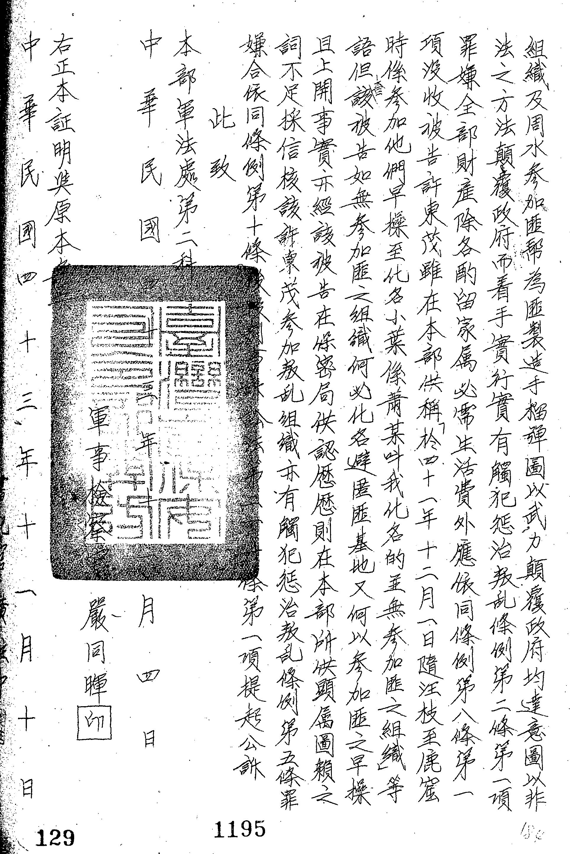 法條:懲治叛亂條例第10條後段;刑事訴訟法第230條第1項