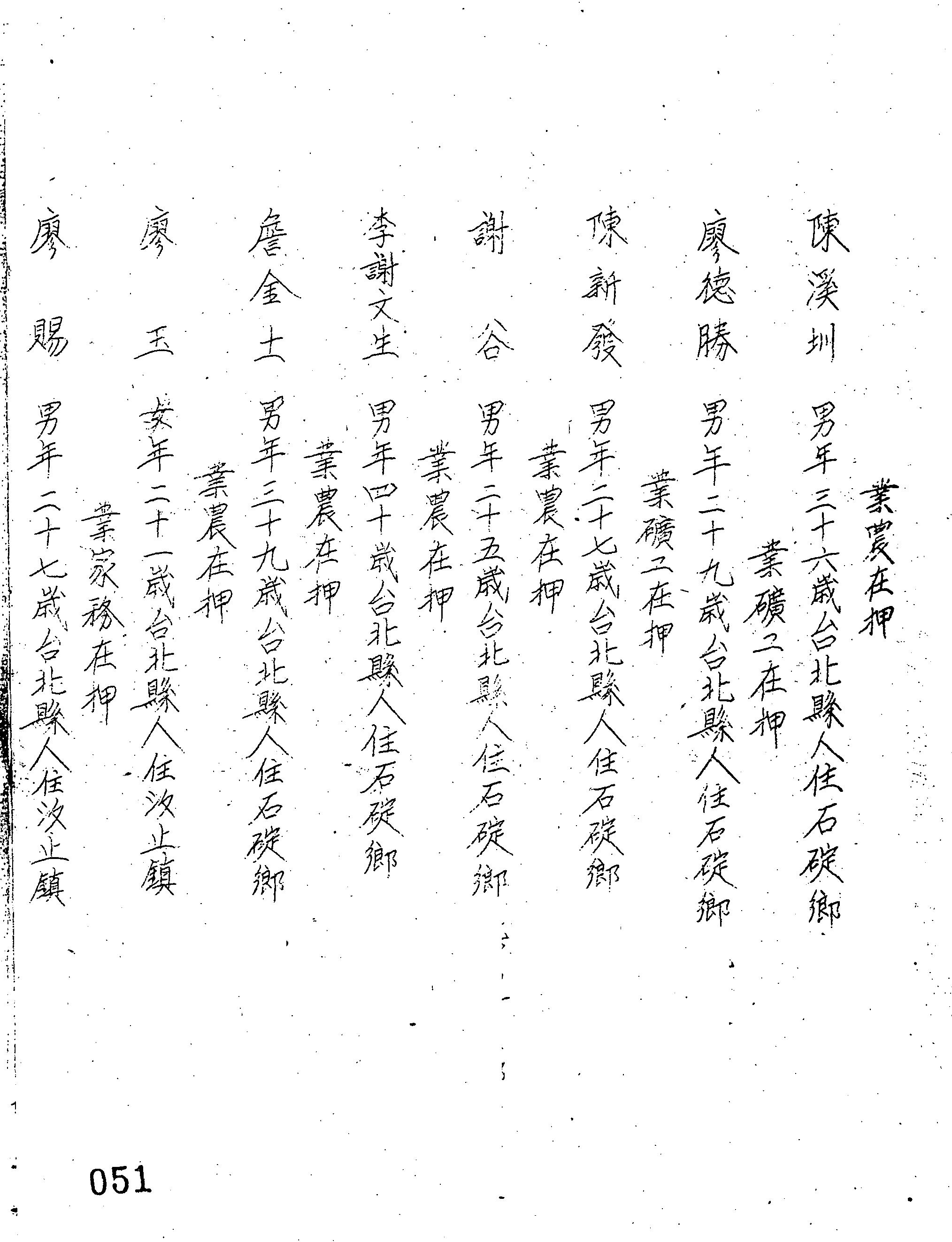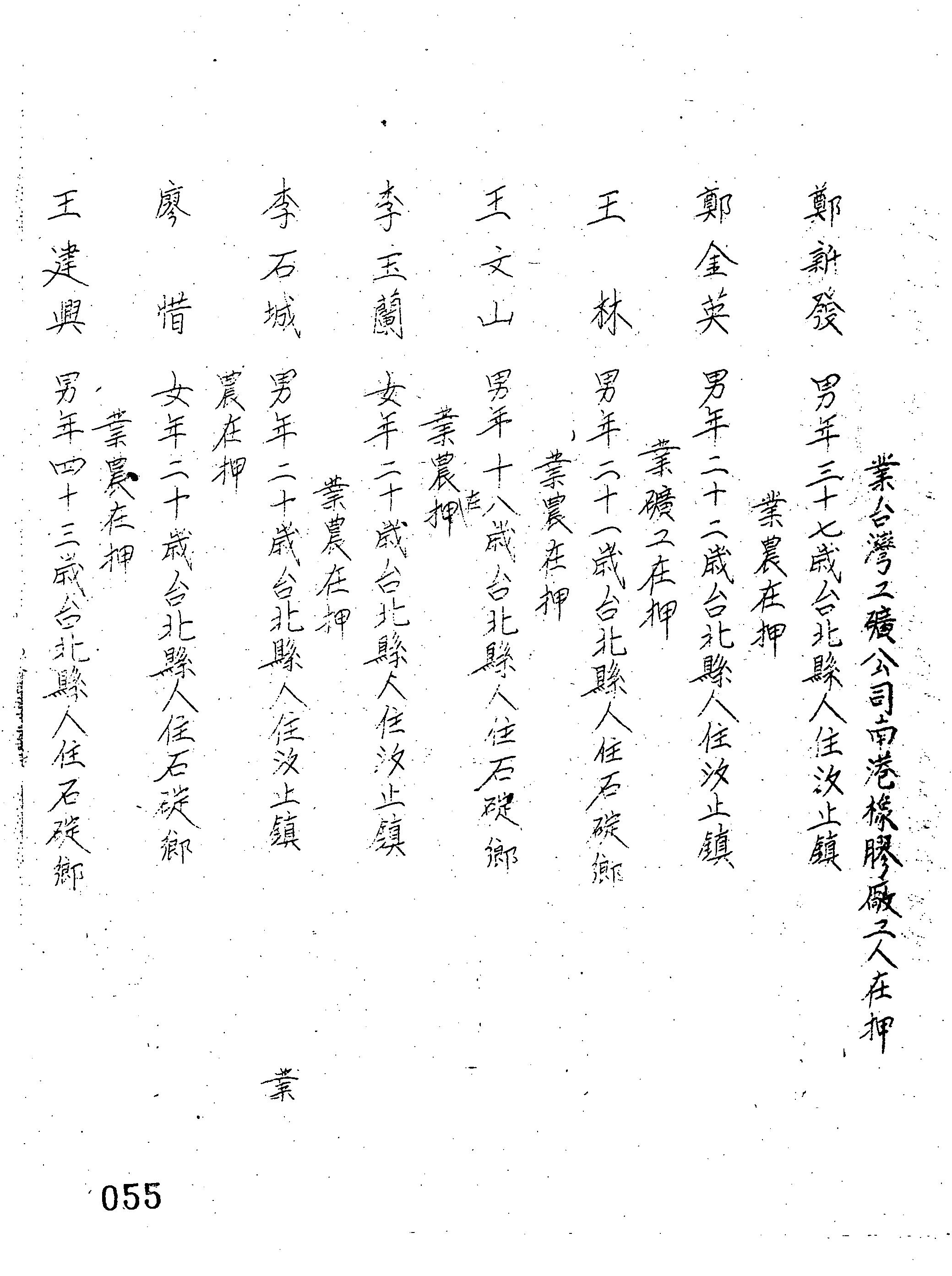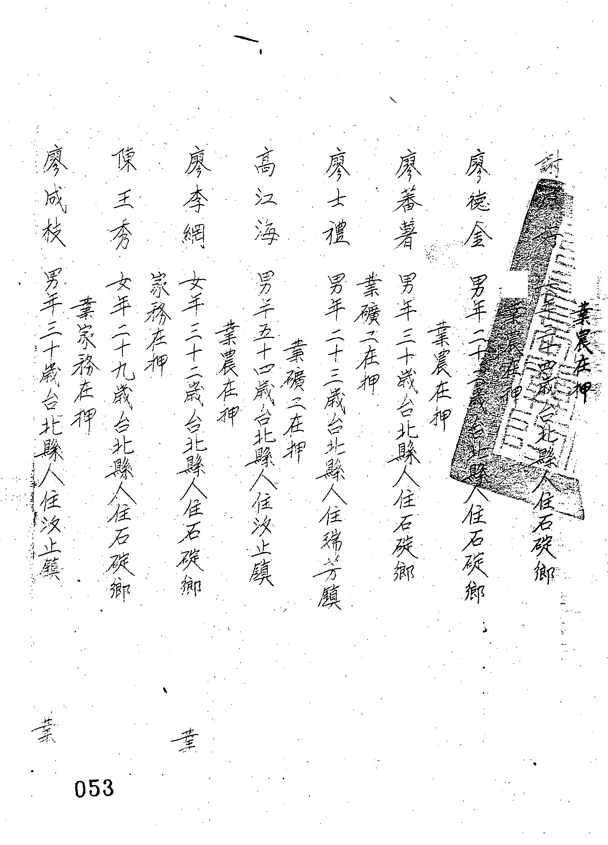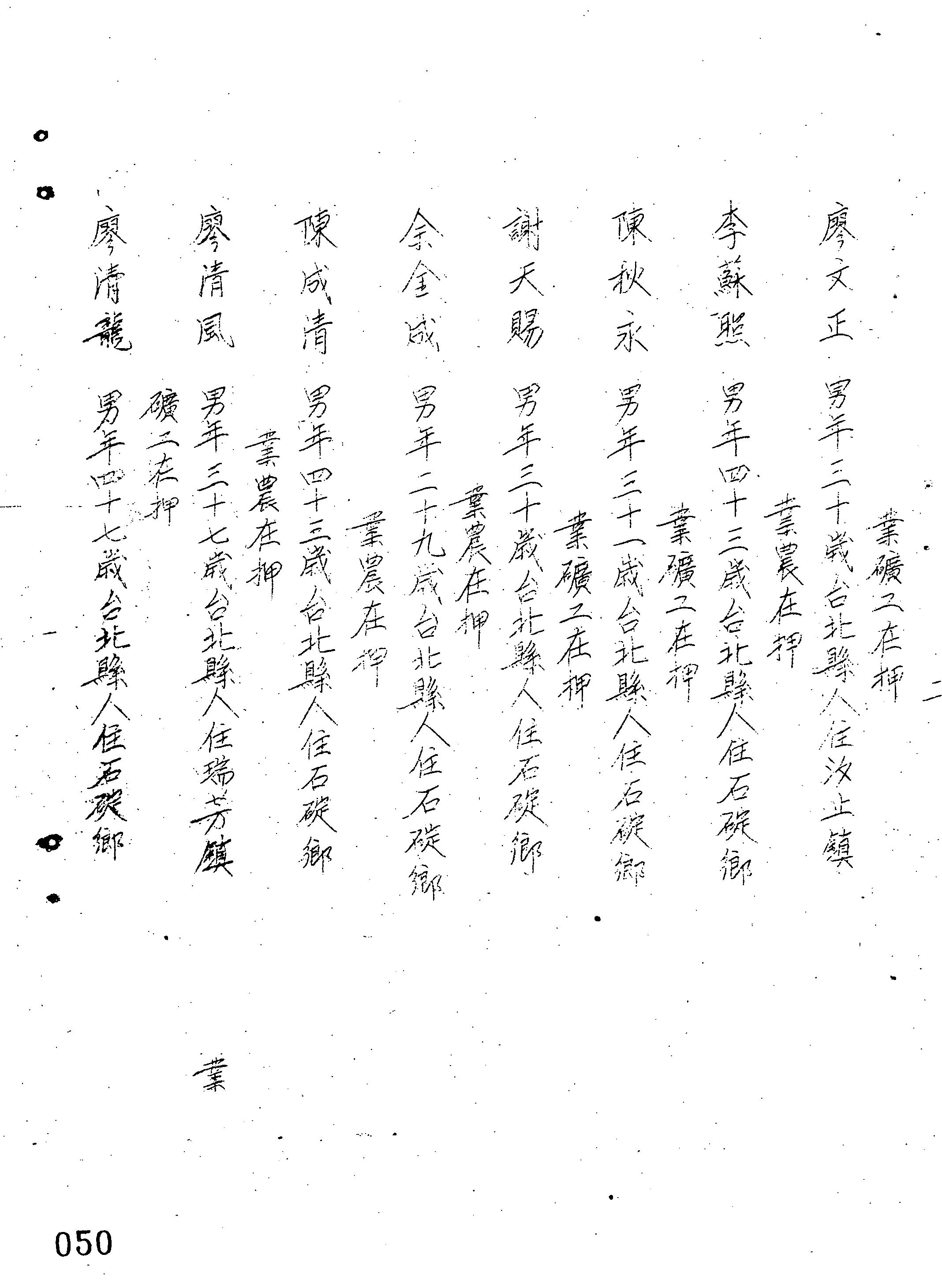 - 裁判書主文/要旨:蕭塗基、廖西盛、陳萬居、林金子、詹清標、廖有慶、廖埤、余福連、高火旺、李紫、王老見、王新發、蘇金英、陳談、陳肆皇、陳論、廖溪和、黃伯達、廖論、李山林、高榕樹、李田本、陳皆得、廖得陳、廖文正、李蘇照、陳秋永、謝天賜、余金成、陳成清、廖清風、廖清龍、陳溪圳、廖德勝、陳新發、謝谷、李謝文生、詹金土、廖玉、廖賜、高陳腰、曾來、高水木、蔡寶、王金印、潘炳輝、蔡清山、王私得、謝廖好、廖德金、廖蕃薯、廖士禮、高江海、廖李網、陳王秀、廖成枝、曾文通、廖萬柴、陳金定、李水圳、王萬居、廖有福、廖萬乞、陳送來、鄭新發、鄭金英、王林、王文山、李玉蘭、李石城、廖惜、王建興、陳心誠、廖情,羈押期間各延長2月。