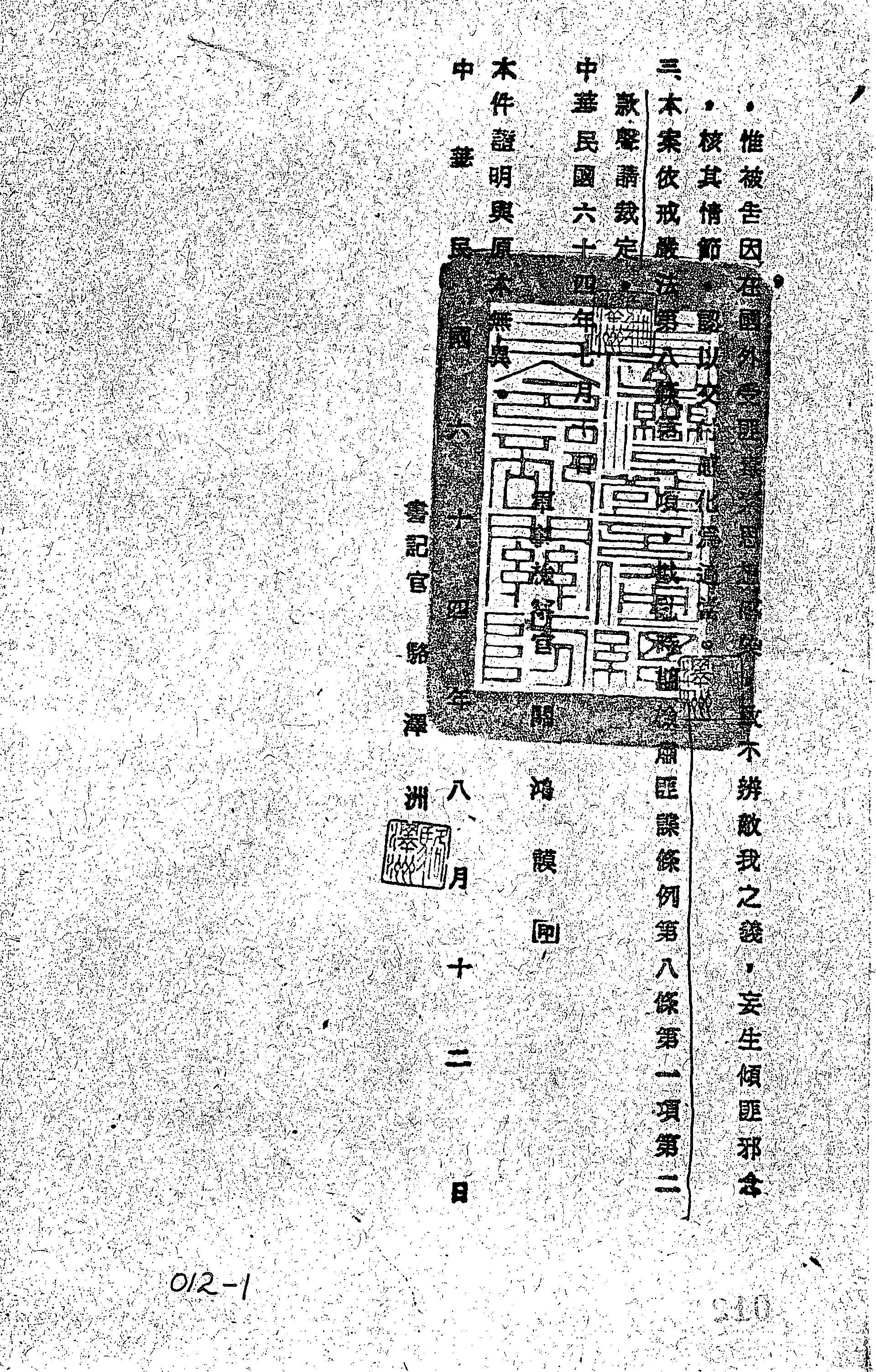法條:戒嚴法第8條第2項;戡亂時期檢肅匪諜條例第8條第1項第2款