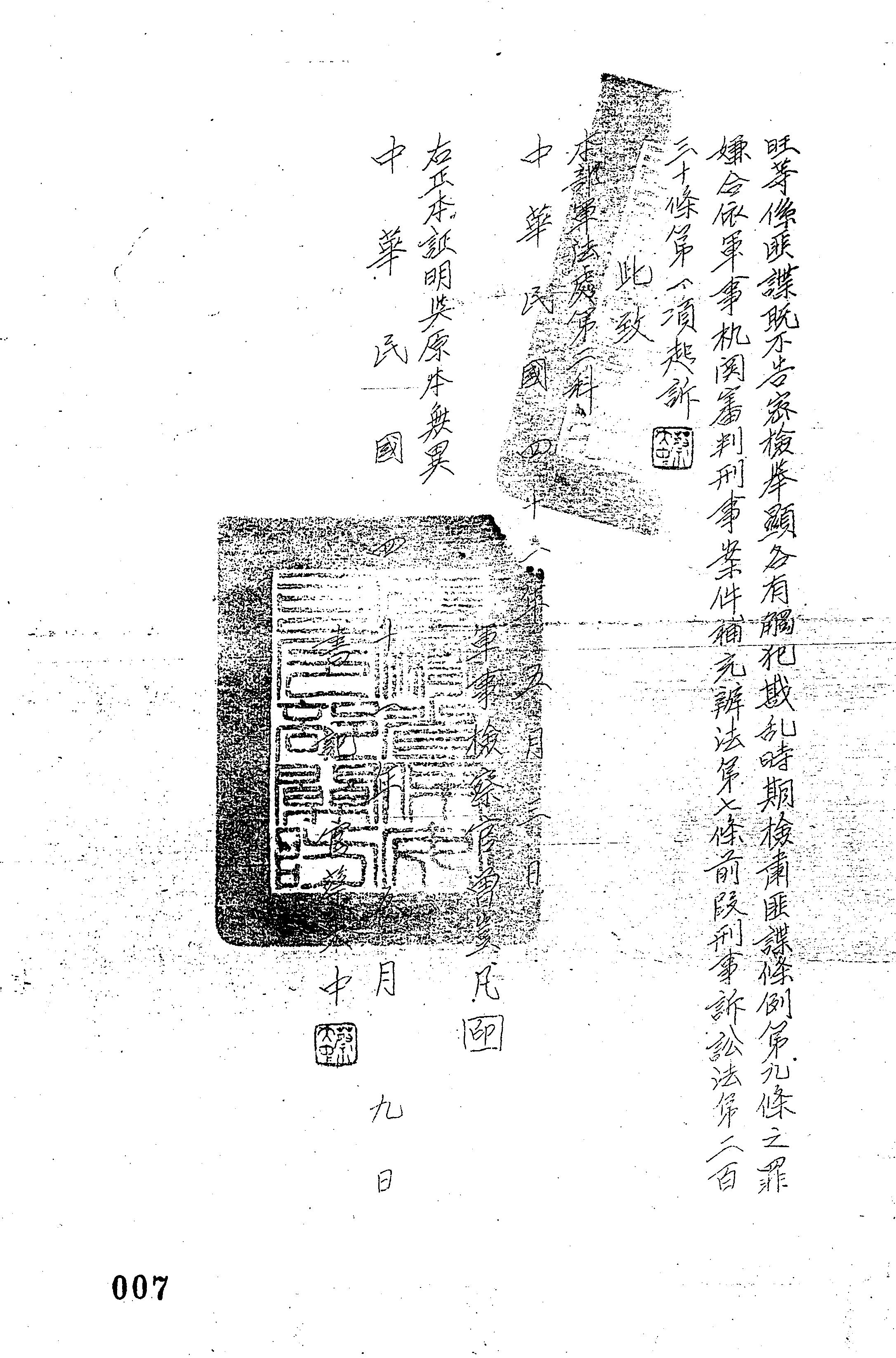 法條:軍事機關審判刑事案件補充辦法第7條前段;刑事訴訟法第230條第1項
