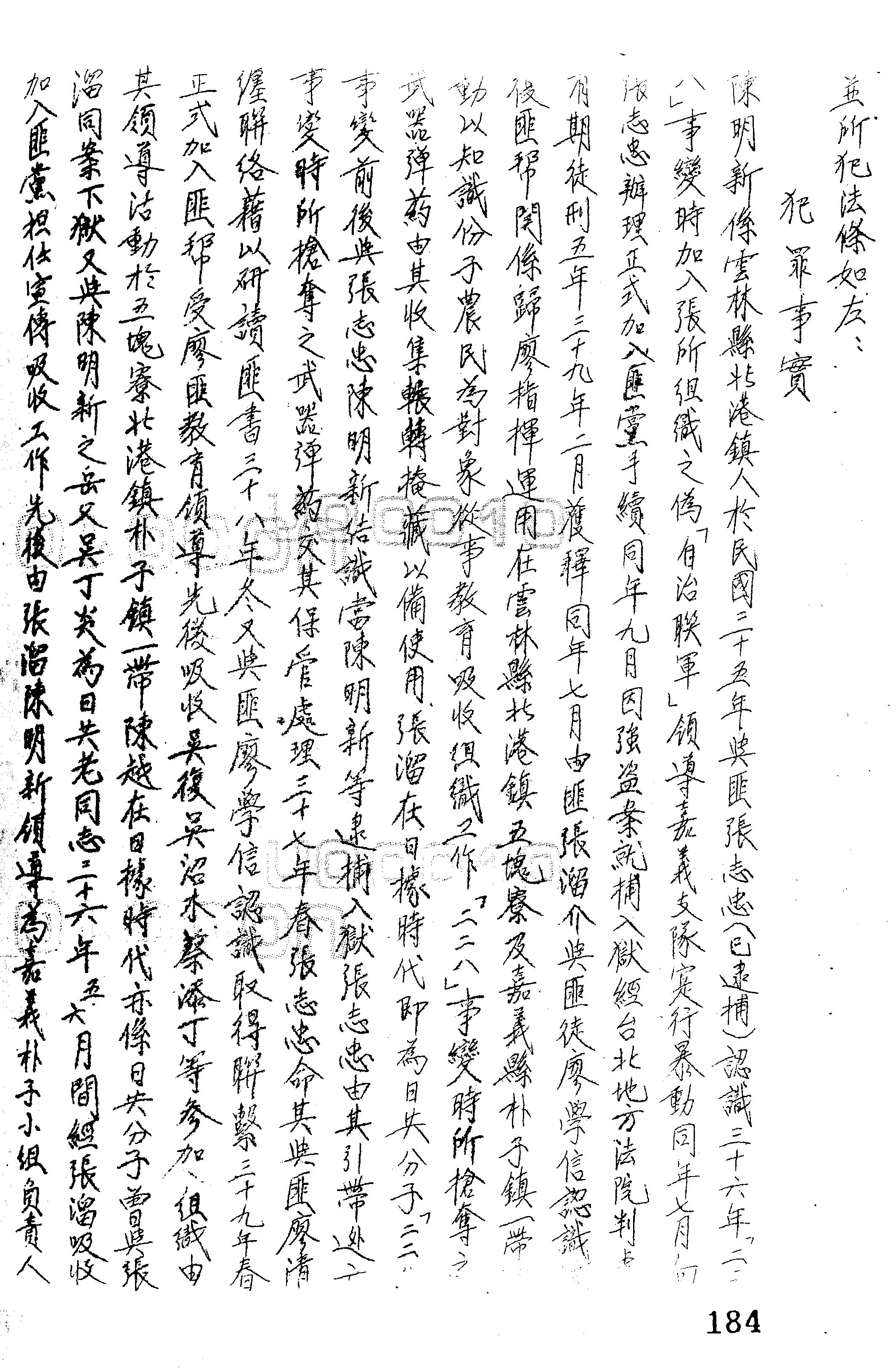 - 裁判書主文/要旨:陳明新等因叛亂案件業經偵查終結認應提起公訴。