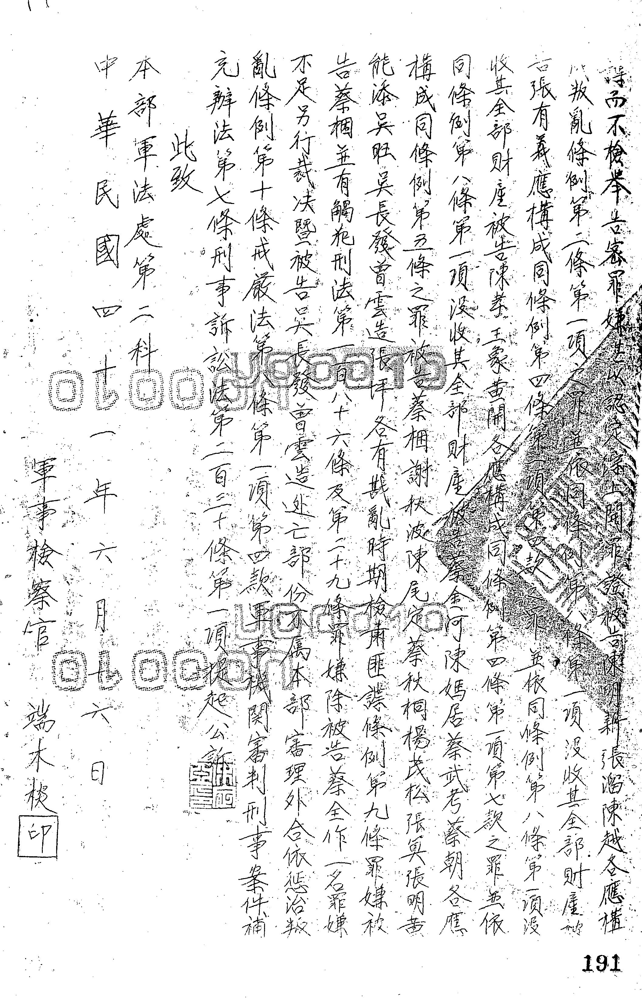 - 裁判書正題名: 臺灣省保安司令部41年安澄字第2398號起訴書