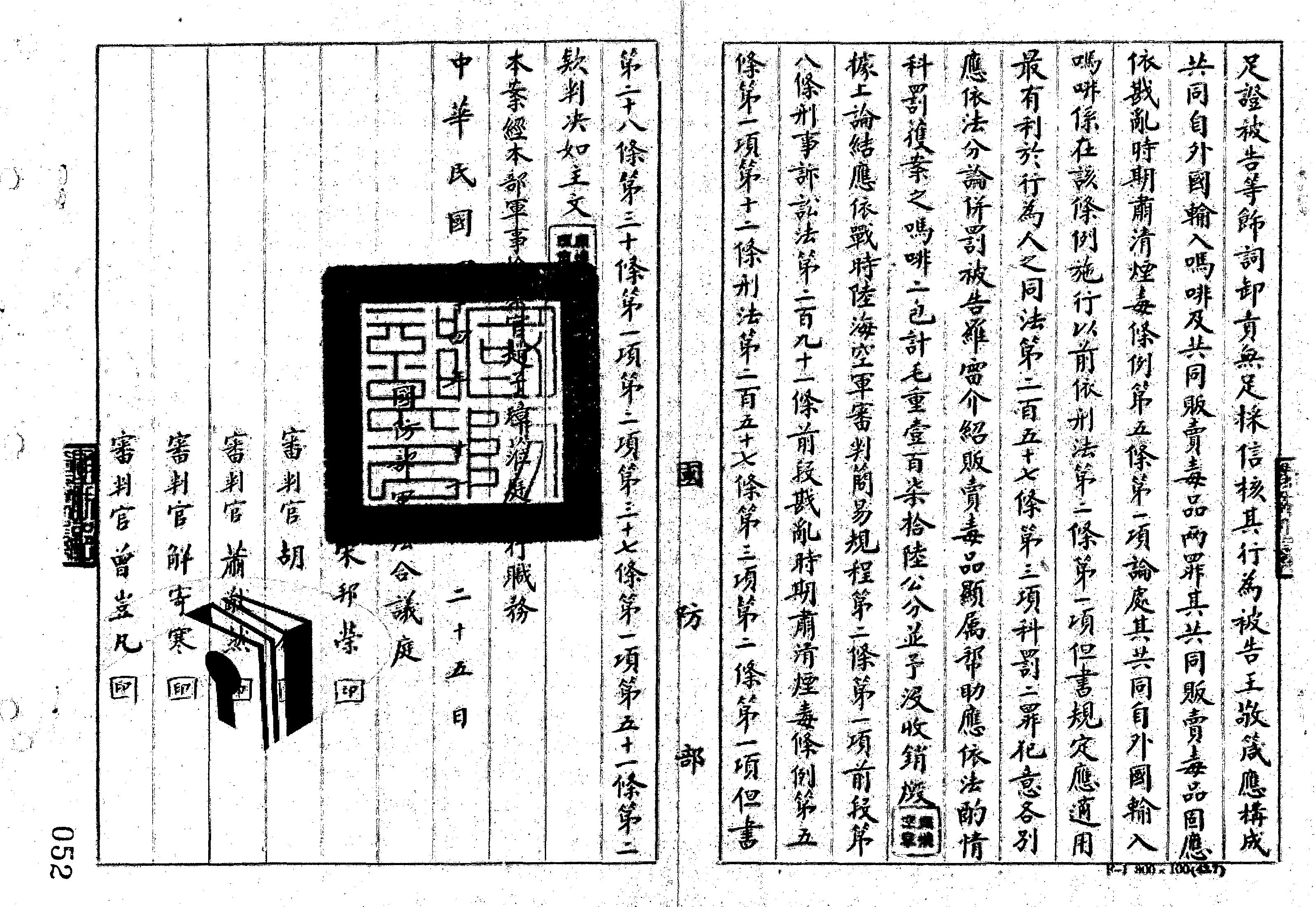 - 法條:戰時陸海空軍審判簡易規程第2條第1項前段、第8條;刑事訴訟法第291條前段;戡亂時期肅清煙毒條例第5條第1項、第12條;刑法第257條第3項、第2條第1項但書、第28條、第30條第1項、第30條第2項、第37條第1項、第51條第2款