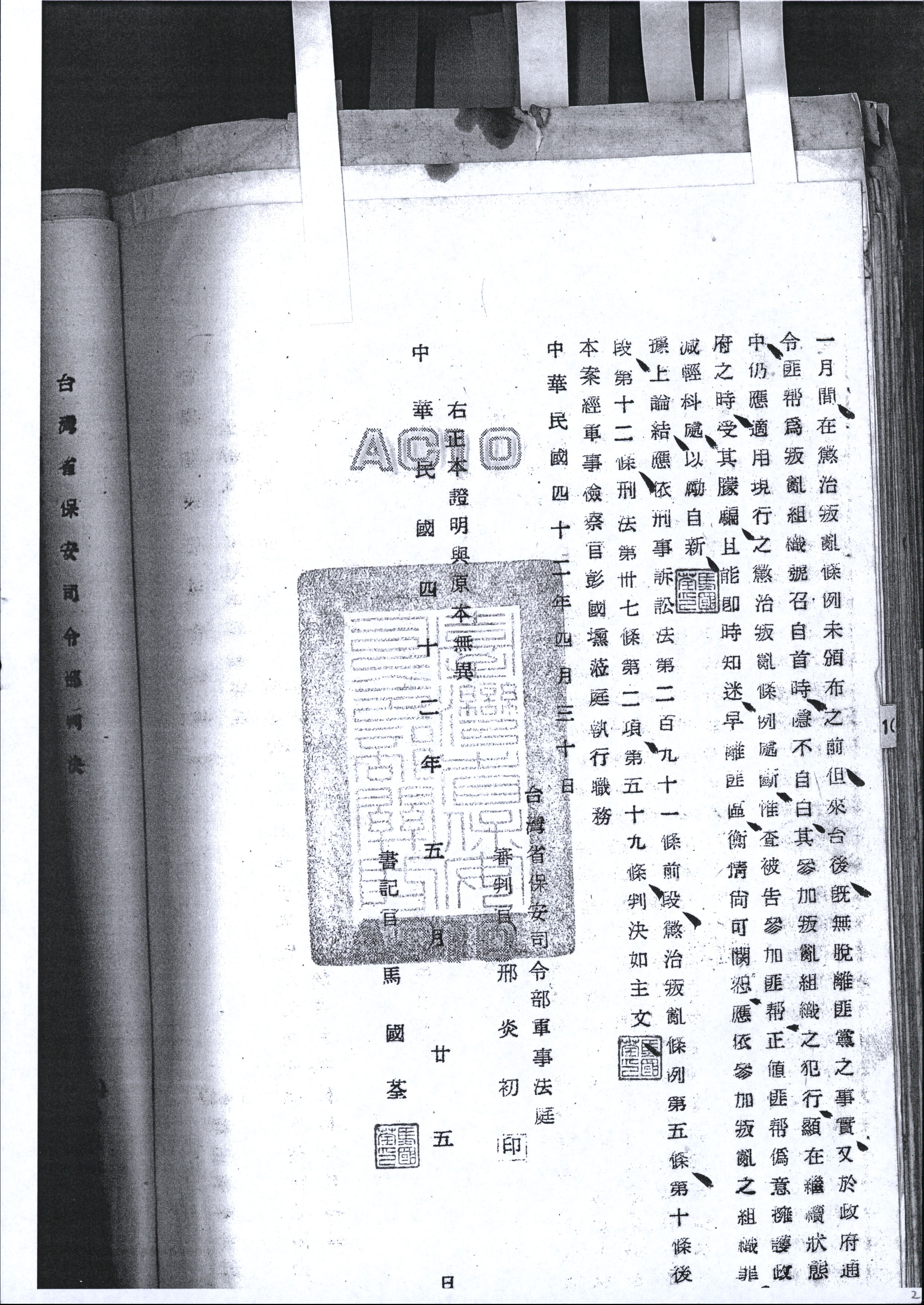 法條:刑事訴訟法第291條前段;懲治叛亂條例第5條、第10條後段、第12條;刑法第37條第2項