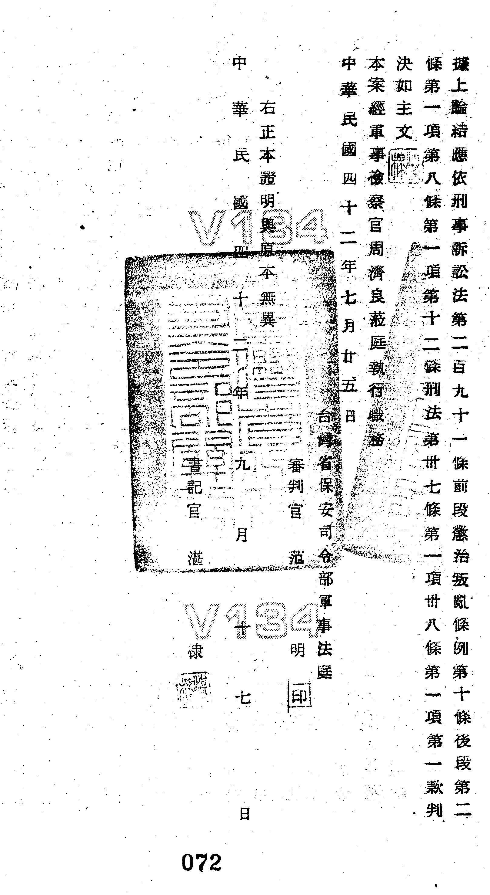 法條:刑事訴訟法第291條前段;懲治叛亂條例第10條後段、第2條第1項、第8條第1項、第12條;刑法第37條第1項、第38條第1項第1款