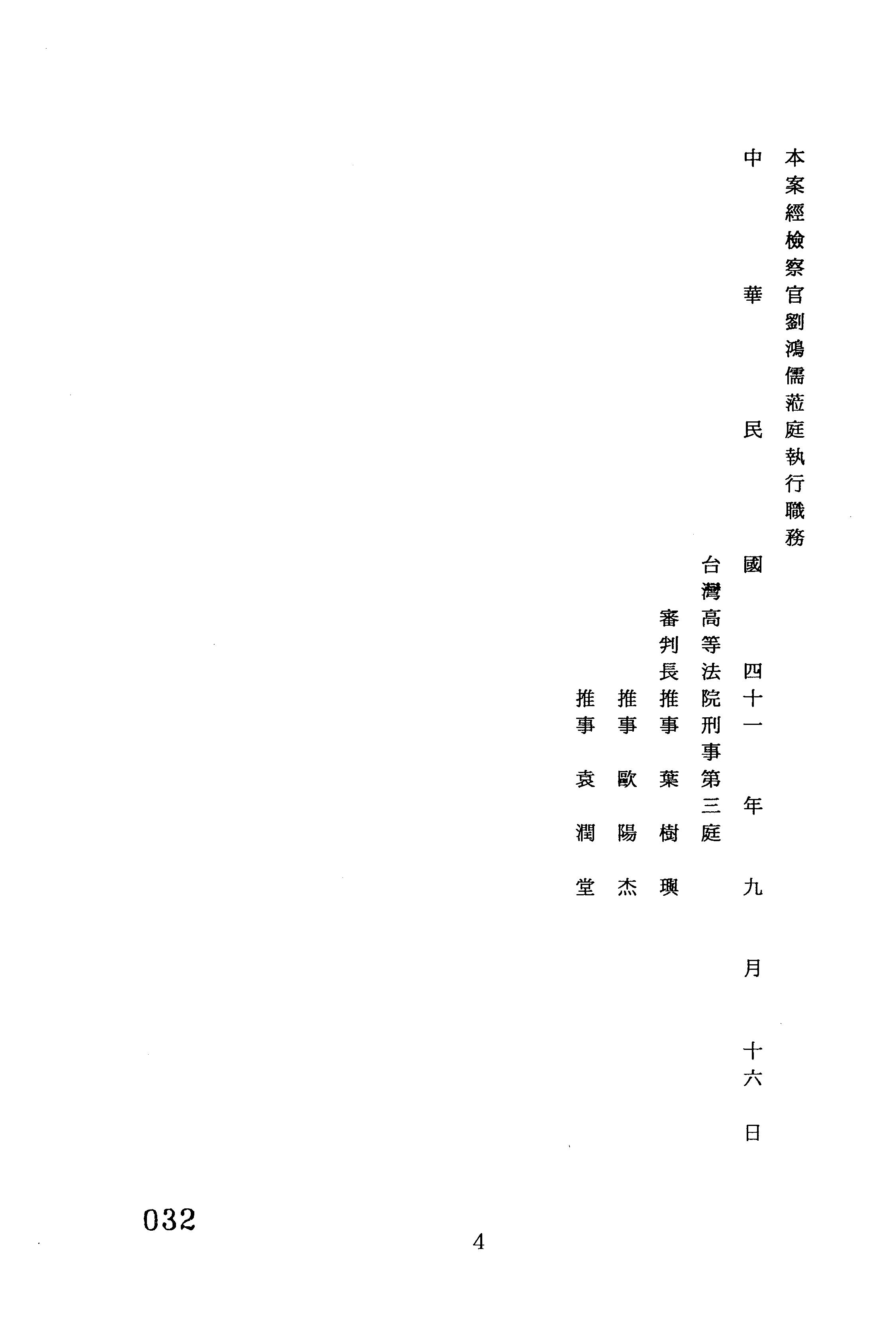 - 裁判書正題名: 臺灣高等法院41年訴字第0003號刑事判決書