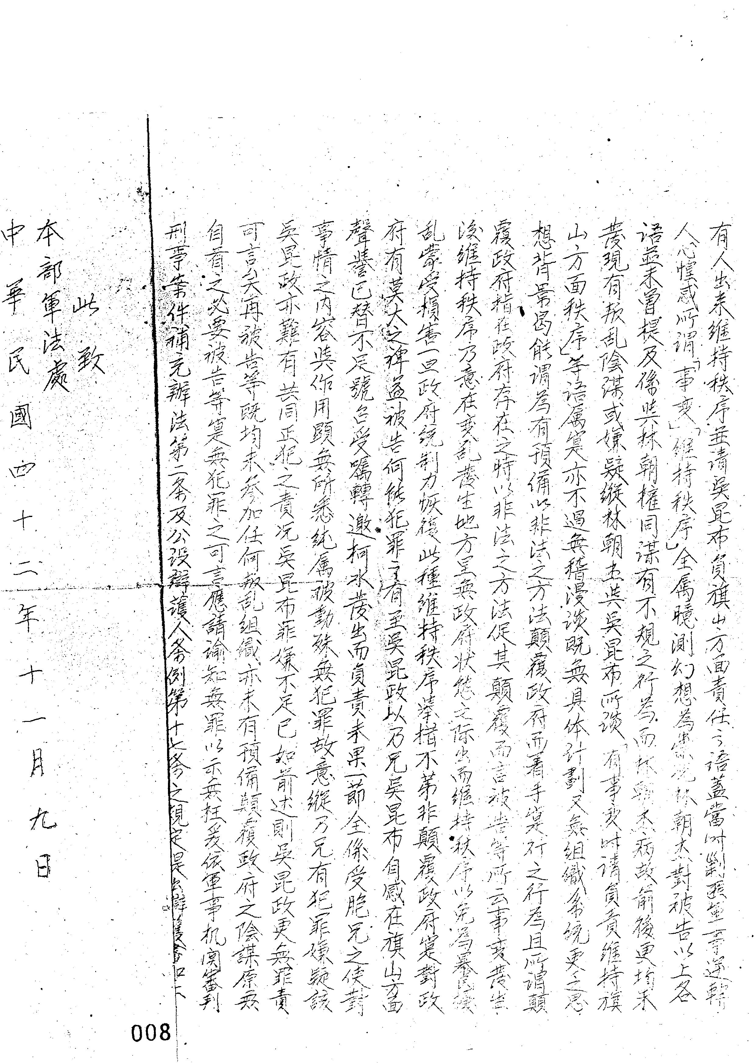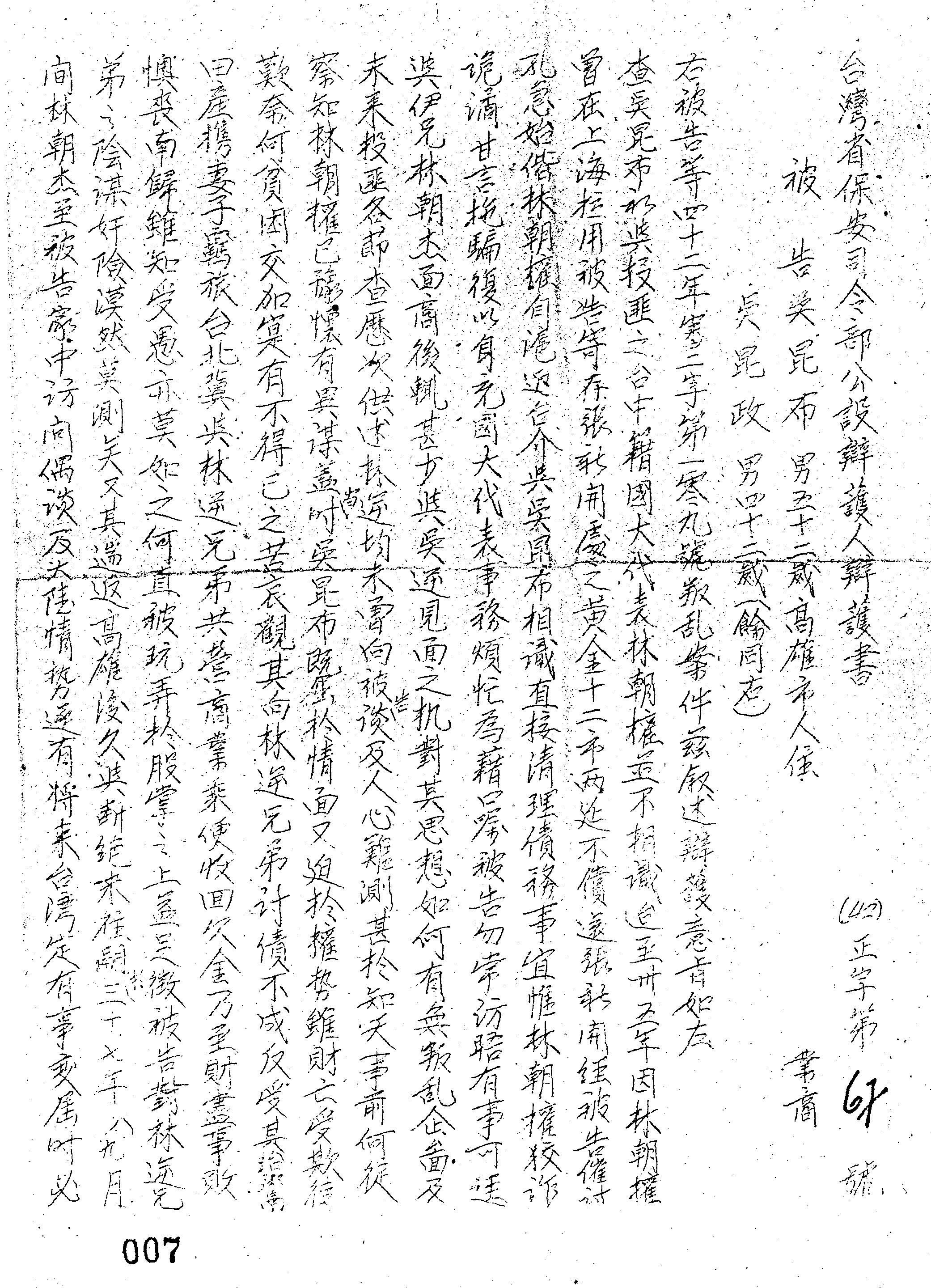 臺灣省保安司令部42年正字第0067號公設辯護人辯護書