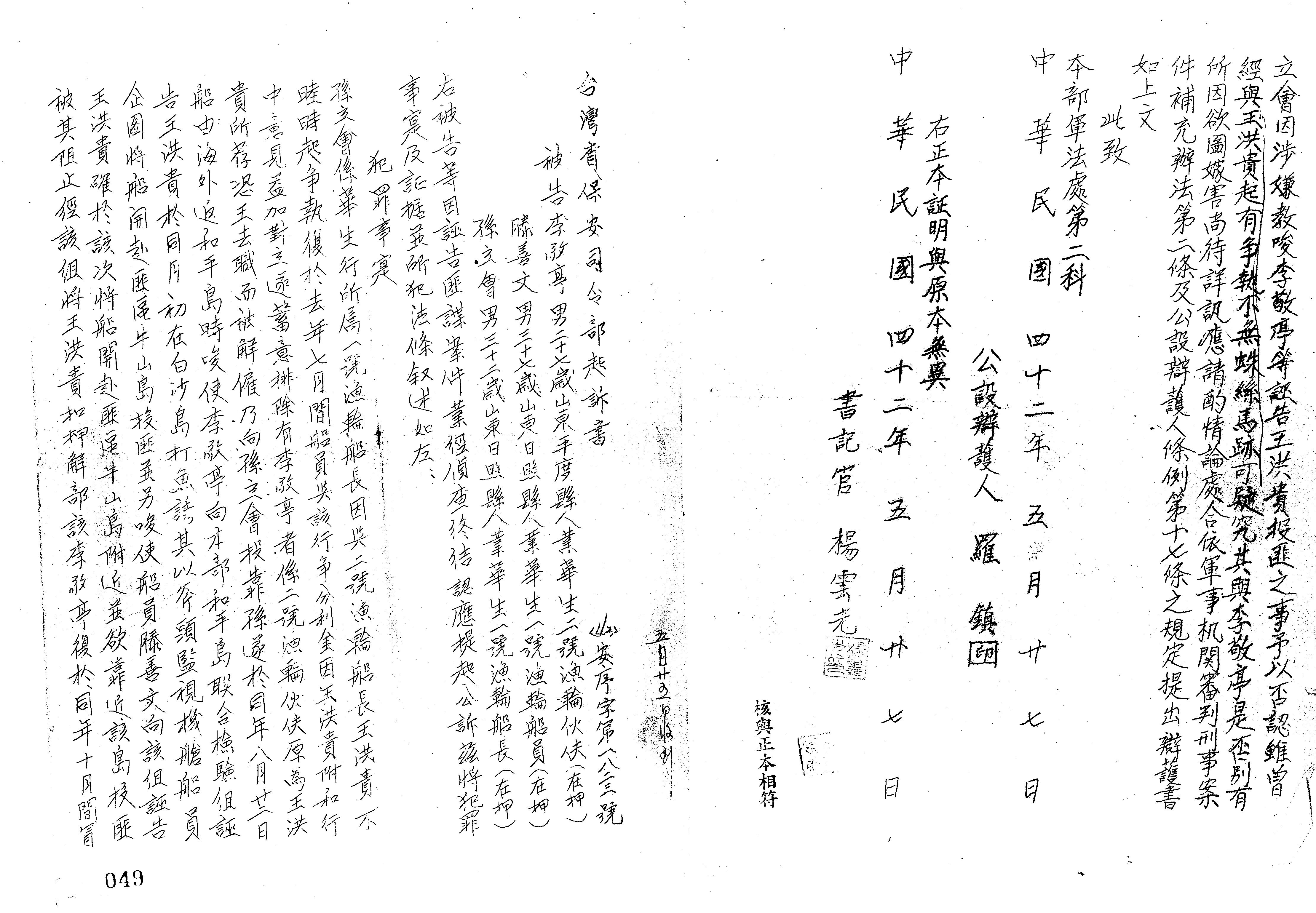 法條:懲治叛亂條例第10條後段;刑事訴訟法第230條第1項