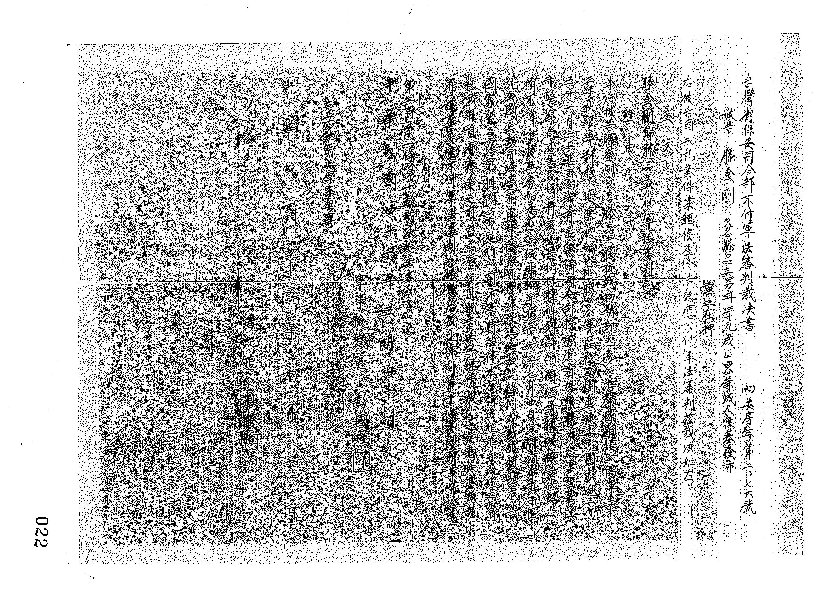 臺灣省保安司令部42年安序字第2076號不付軍法審判裁決書