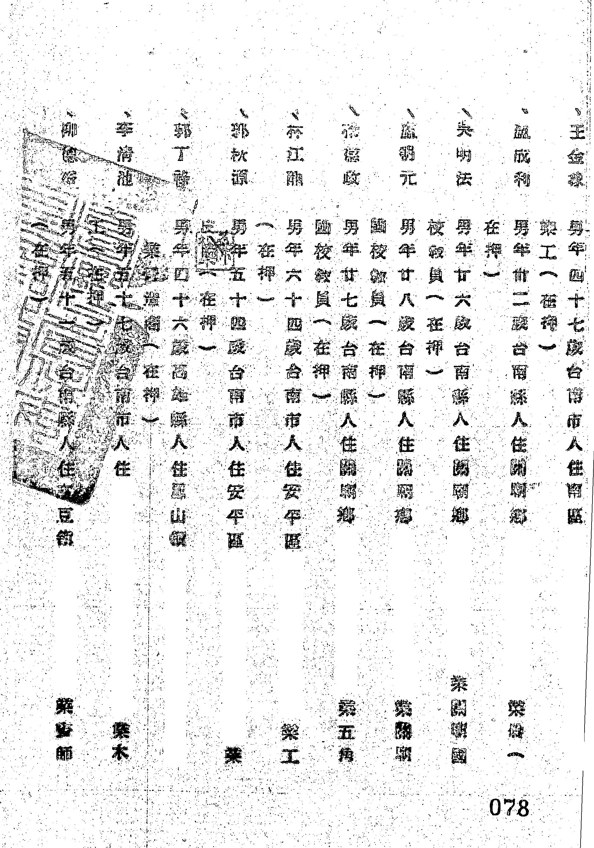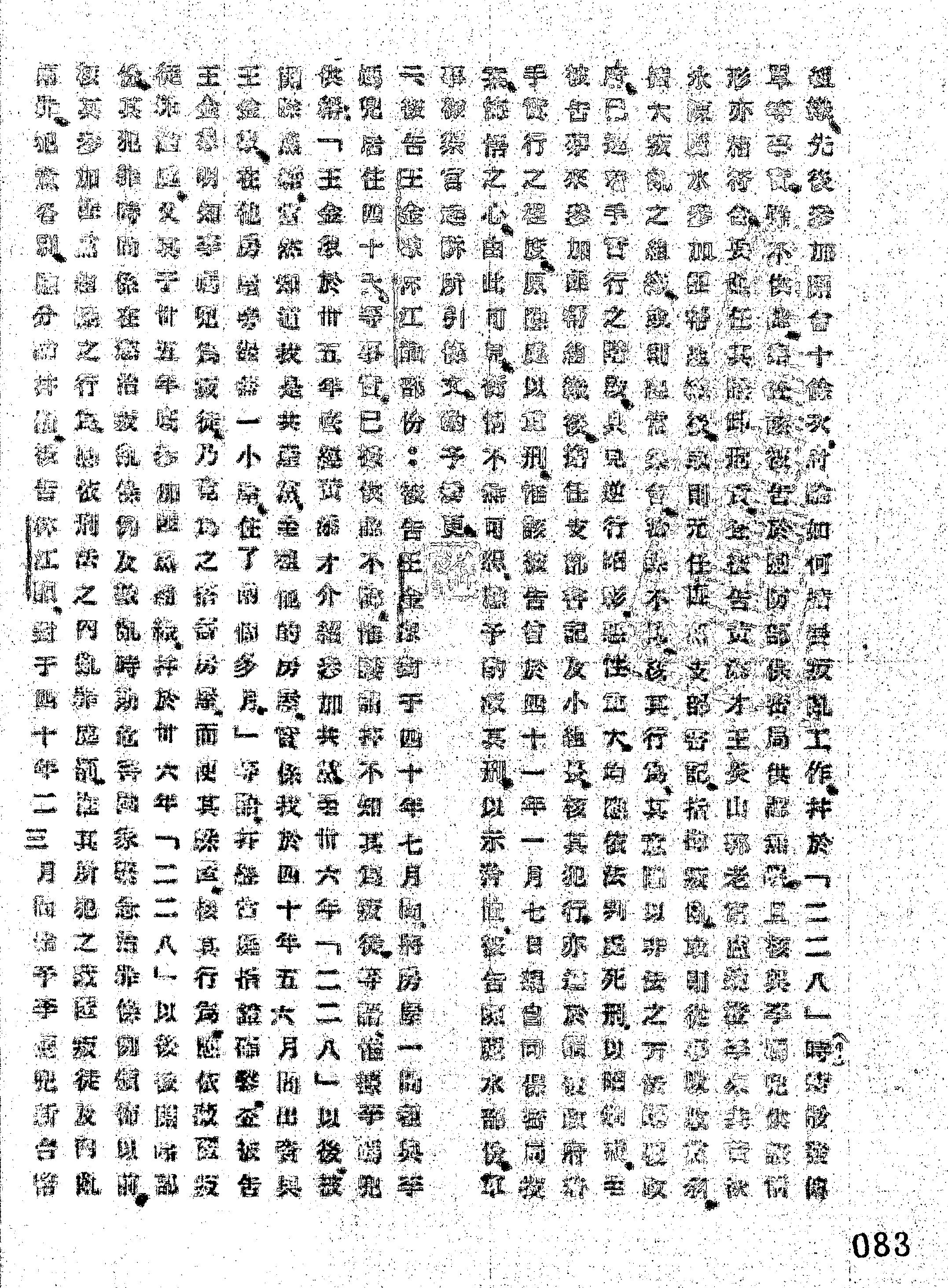 - 法條:刑事訴訟法第291條前段、第292條、第293條第1項、第287條第2項;懲治叛亂條例第2條第1項、第5條、第8條第1項、第10條後段、第12條;戒嚴法第8條第2項;戡亂時期檢肅匪諜條例第9條;刑法第2條第1項但書、第37條第1項、第37條第2項、第59條、第51條第5款、第56條、第100條第2項