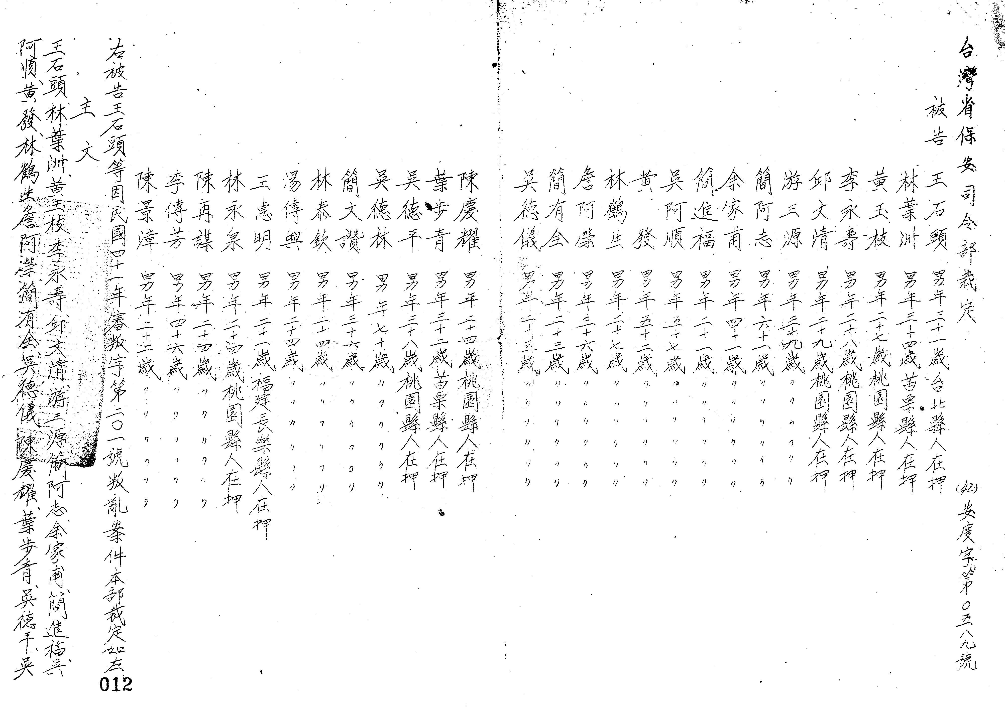 - 裁判書正題名: 臺灣省保安司令部42年安度字第0589號裁定書