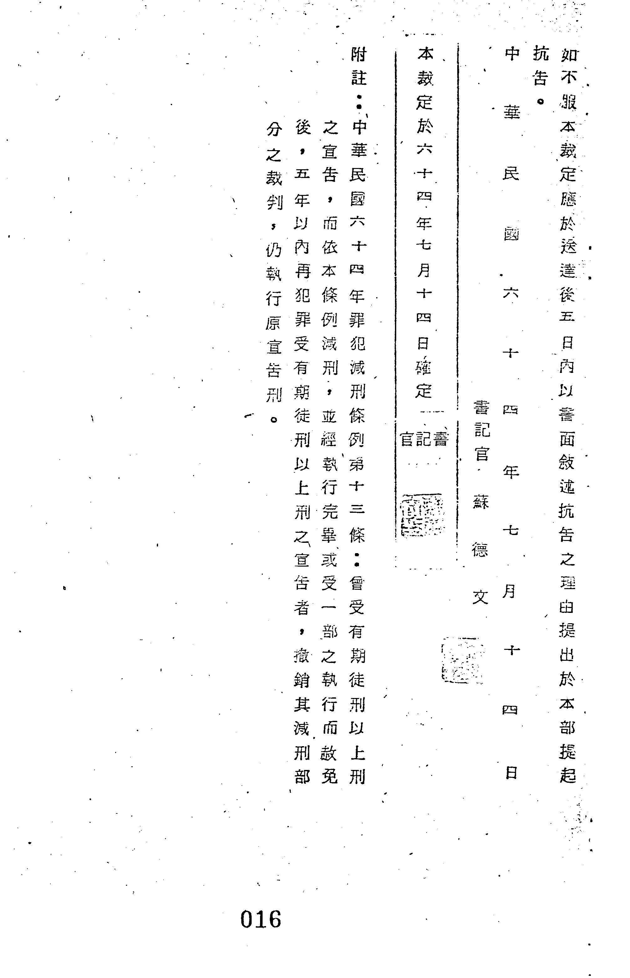 裁判書字號:(64)諫減字第0361號