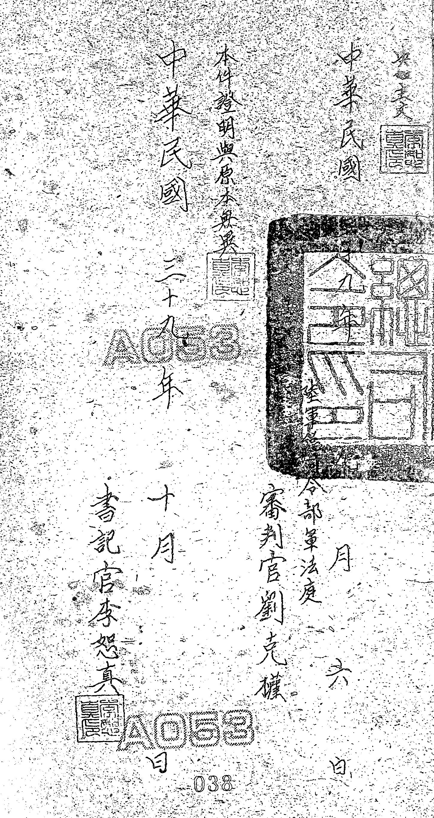 - 裁判書正題名: 陸軍總司令部39年衡模判字第0036號判決書