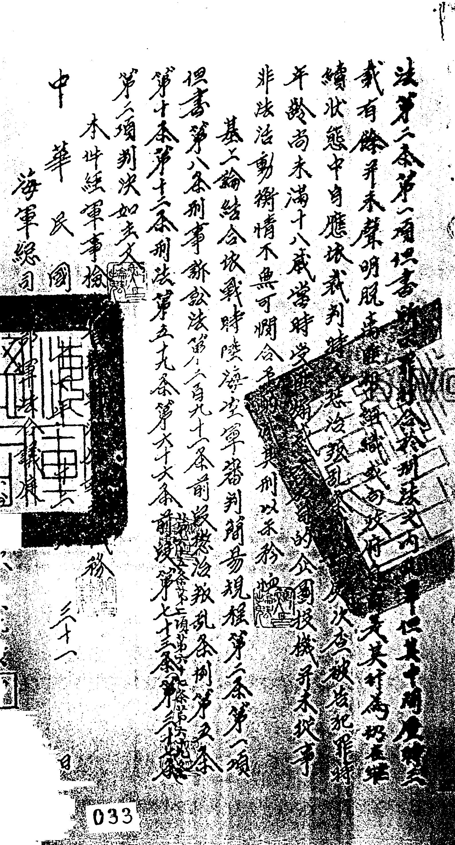 法條:戰時陸海空軍審判簡易規程第2條第1項但書、第8條;刑事訴訟法第291條前段;懲治叛亂條例第5條、第10條、第12條;刑法第59條、第66條前段、第65條第2項、第67條、第69條、第73條、第37條第2項