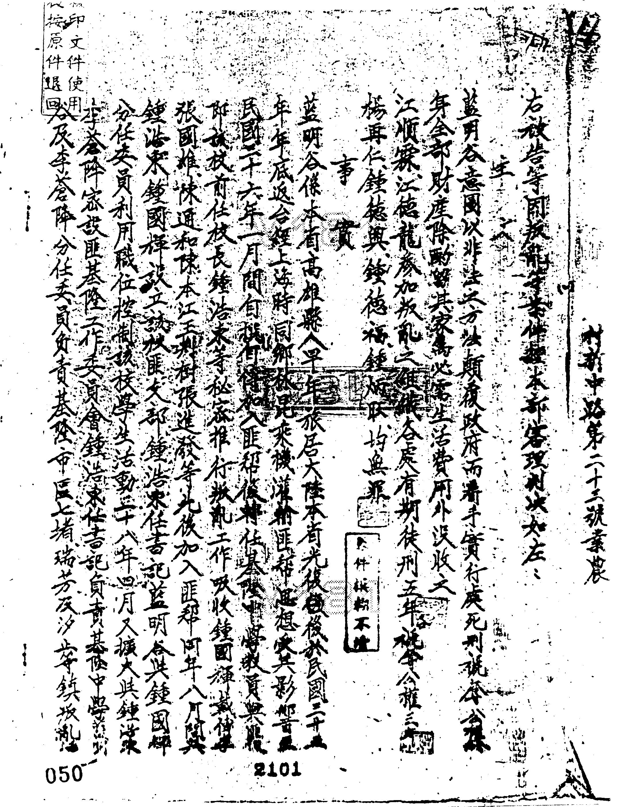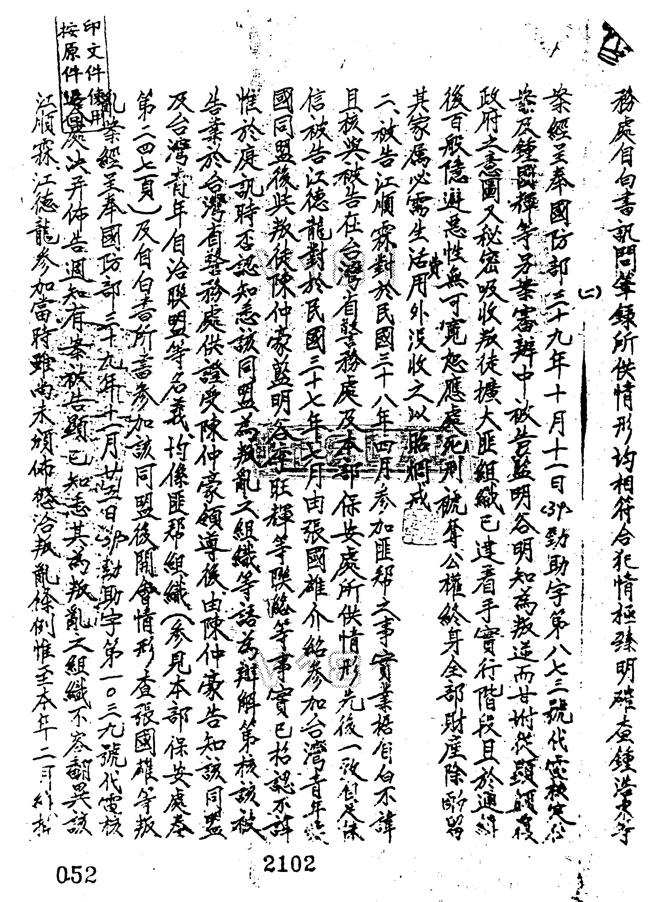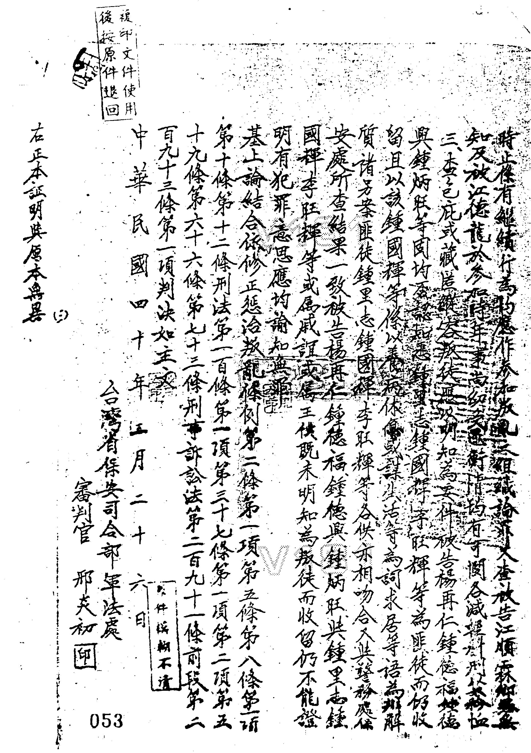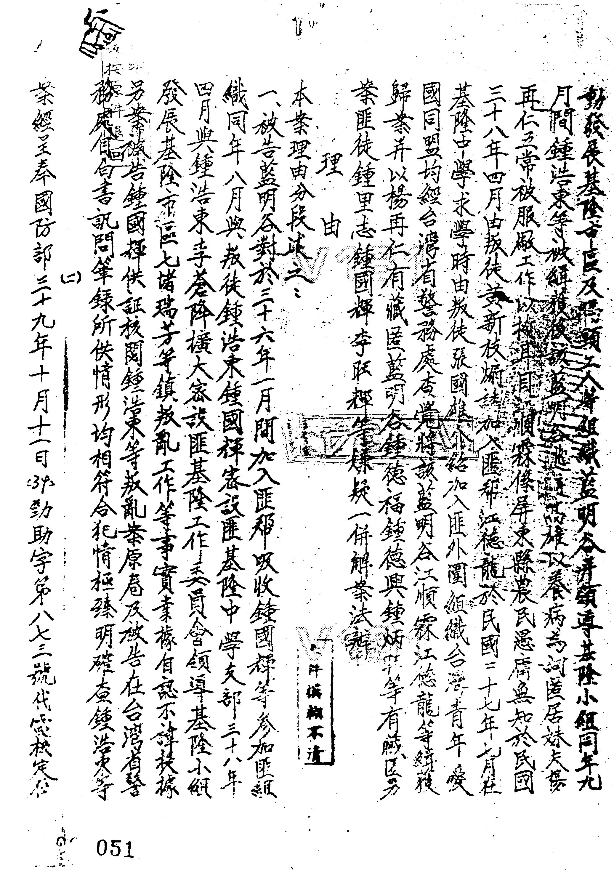 - 裁判書正題名: 臺灣省保安司令部40年安潔字第1250號判決書