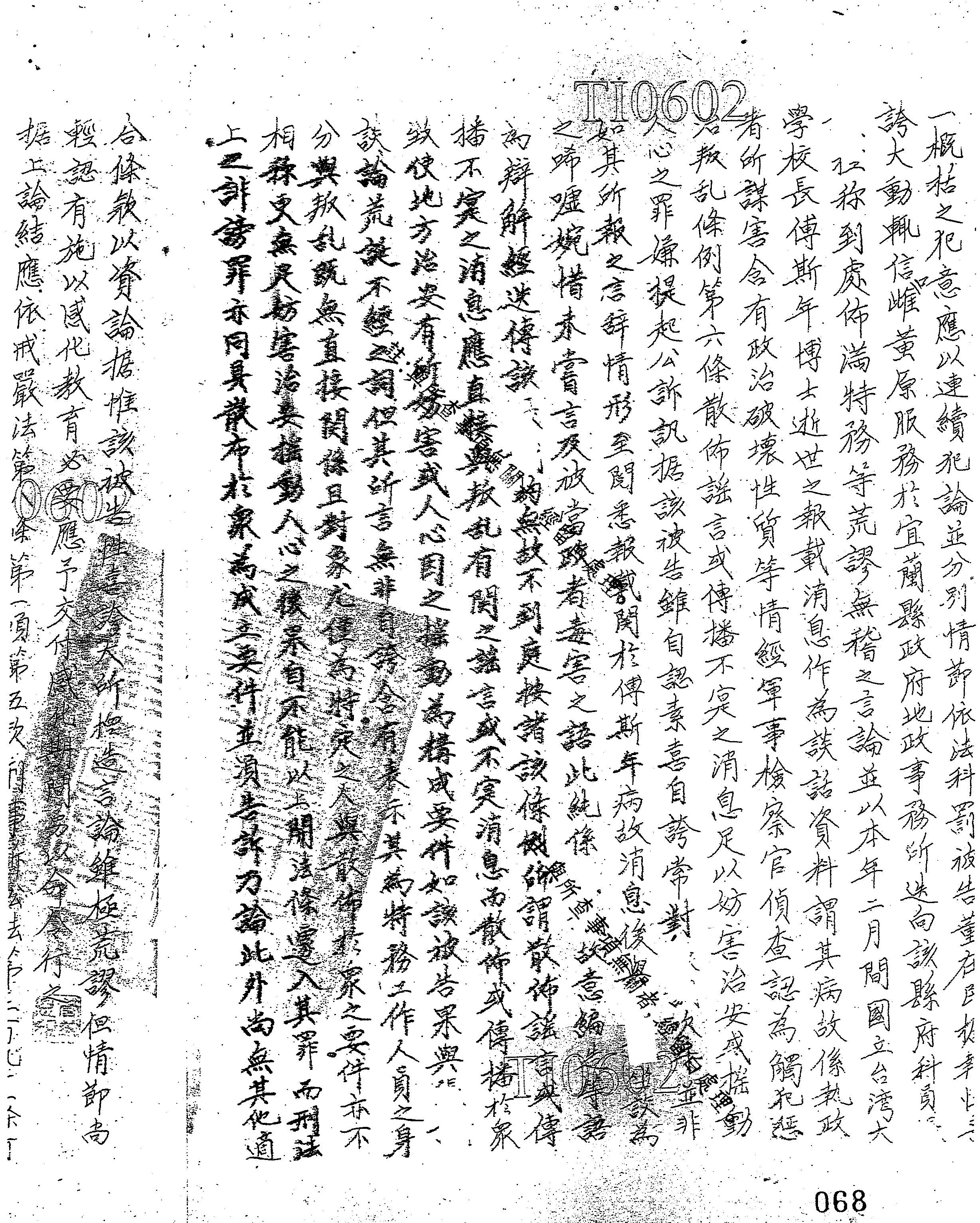 - 法條:戒嚴法第8條第1項第5款;刑事訴訟法第291條前段;刑法第28條、第56條、第216條、第214條、第42條第2項;戡亂時期檢肅匪諜條例第8條第1項第2款