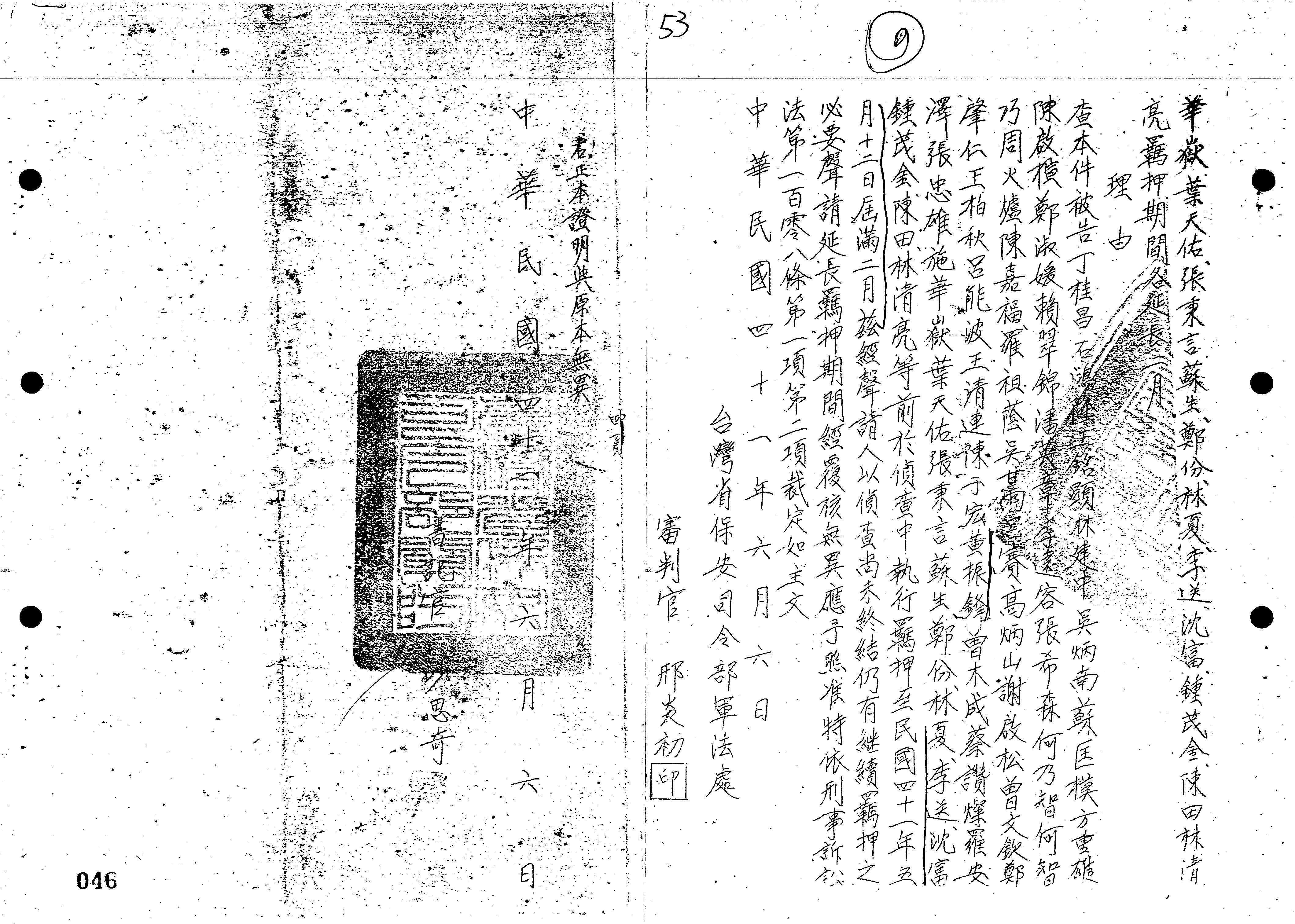 - 裁判書主文/要旨:丁桂昌、石鴻隆、王銘顯、林建中、吳炳南、蘇匡模、方重雄、陳啟楦、鄭淑媛、賴翠錦、潘英章、李遠容、張希森、何乃智、何智巧、周火爐、陳嘉福、羅祖蔭、吳甘雨、呂賽、高炳山、謝啟松、曾文欽、鄭肇仁、王柏秋、呂能波、王清連、陳子宏、黃振鋒、曾木成、蔡讚燦、羅安澤、張忠雄、施華嶽、葉天佑、張秉言、蘇生、鄭份、林夏、李送、沈富、鍾茂金、陳田、林清亮羈押期間各延長2月。