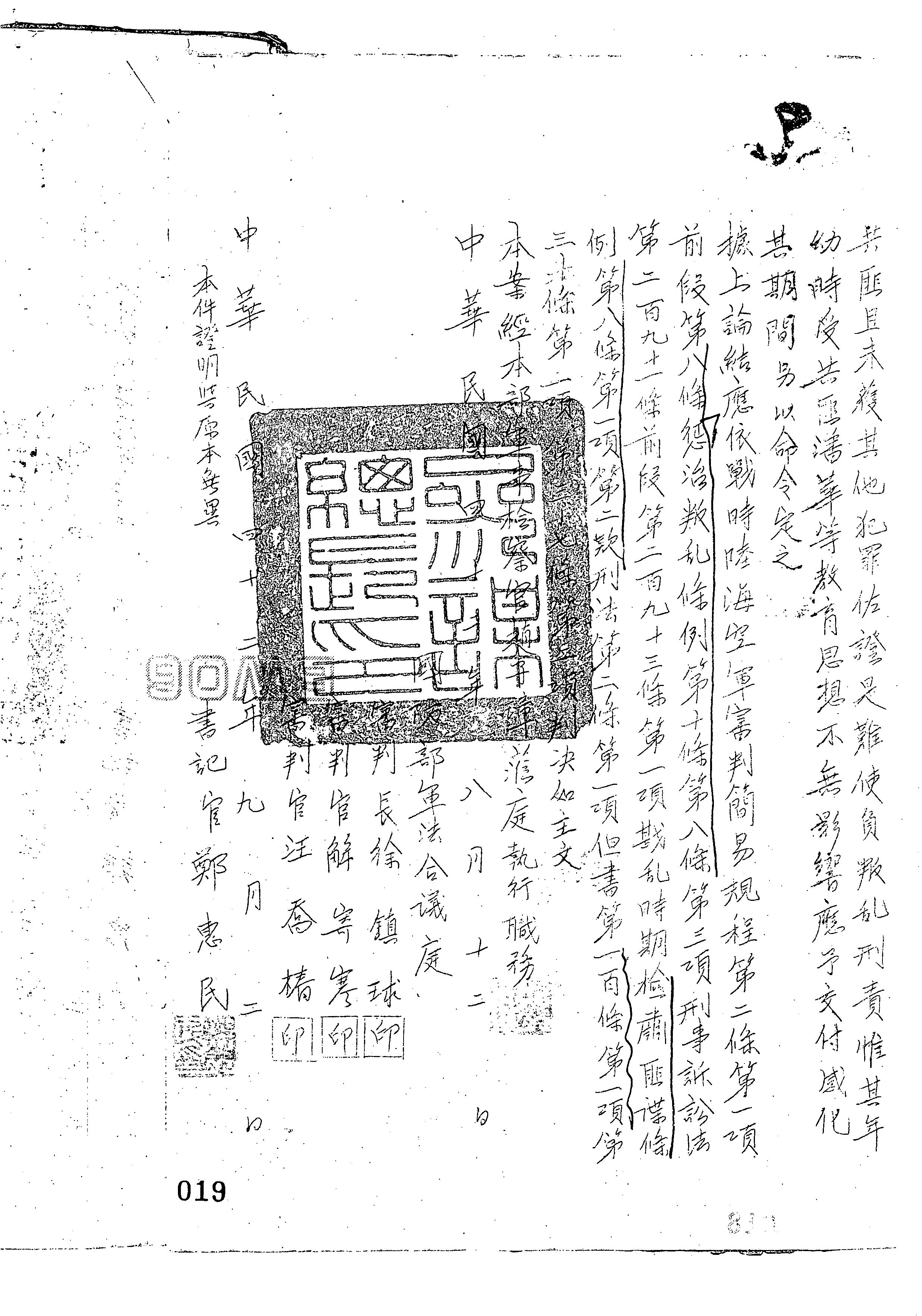 - 法條:戰時陸海空軍審判簡易規程第2條第1項前段、第8條;懲治叛亂條例第10條、第8條第3項;刑事訴訟法第291條前段、第293條第1項;戡亂時期檢肅匪諜條例第8條第1項第2款;刑法第2條第1項但書、第100條第1項、第30條第1項、第37條第2項