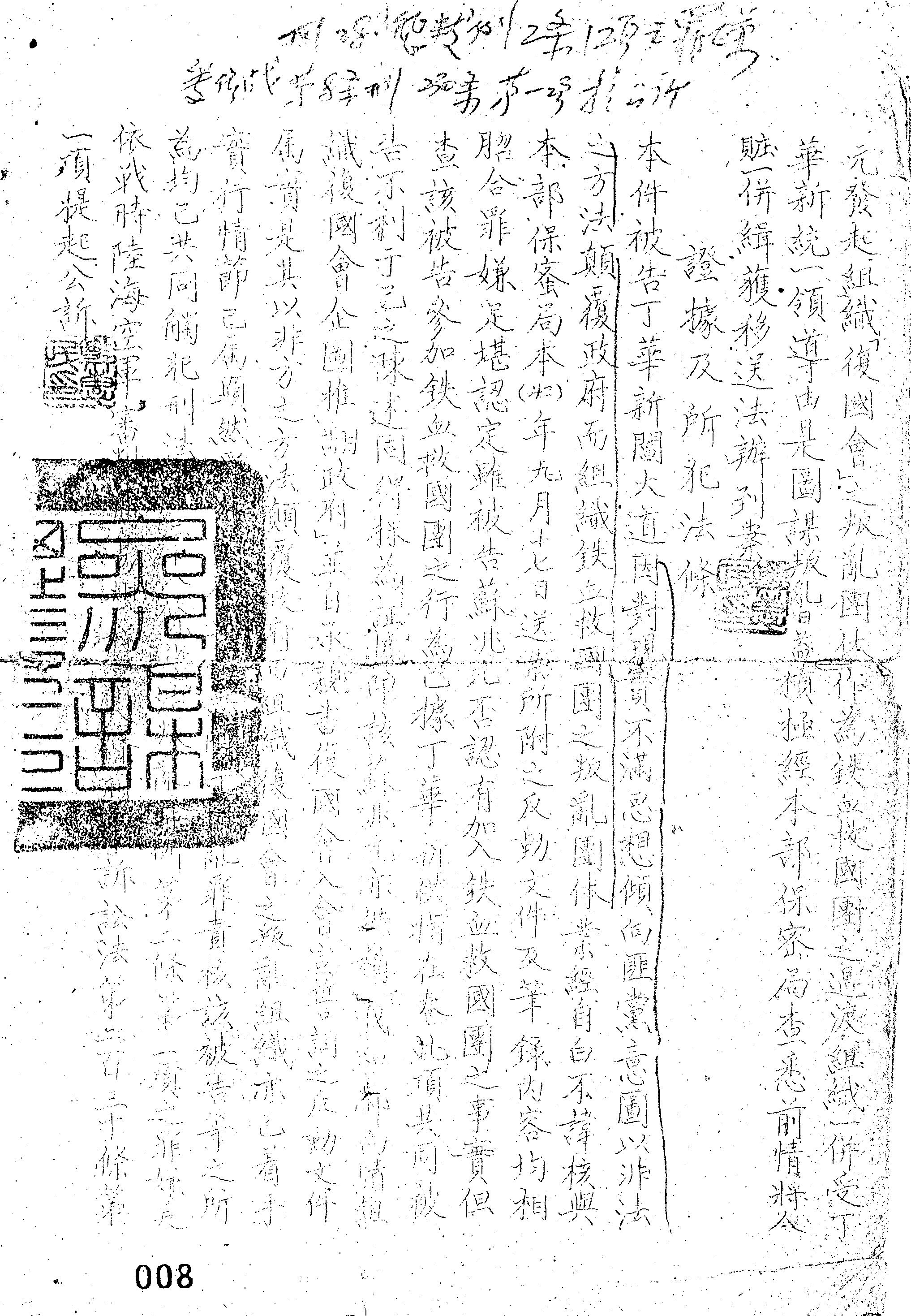 裁判書主文/要旨:丁華新等因叛亂一案業經偵查終結認應提起公訴。