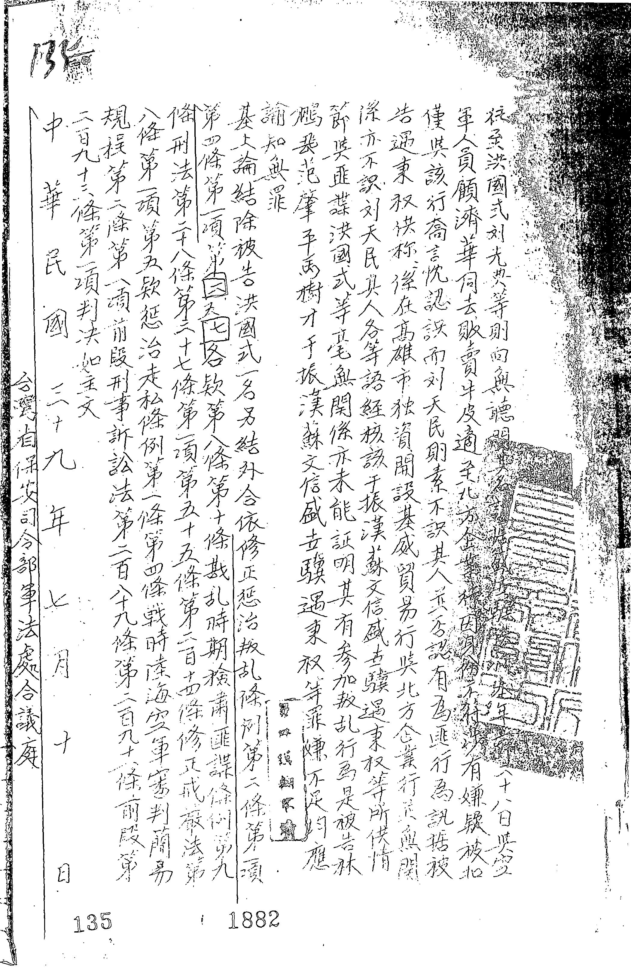 - 法條:修正懲治叛亂條例第2條第1項、第4條第1項第2款、第4條第1項第5款、第4條第1項第7款、第8條、第10條;戡亂時期檢肅匪諜條例第9條;刑法第28條、第37條第1項、第55條、第214條;修正戒嚴法第8條第1項第5款;懲治走私條例第1條、第4條;戰時陸海空軍刑法審判簡易規程第2條第1項前段;刑事訴訟法第289條、第291條前段、第293條第1項