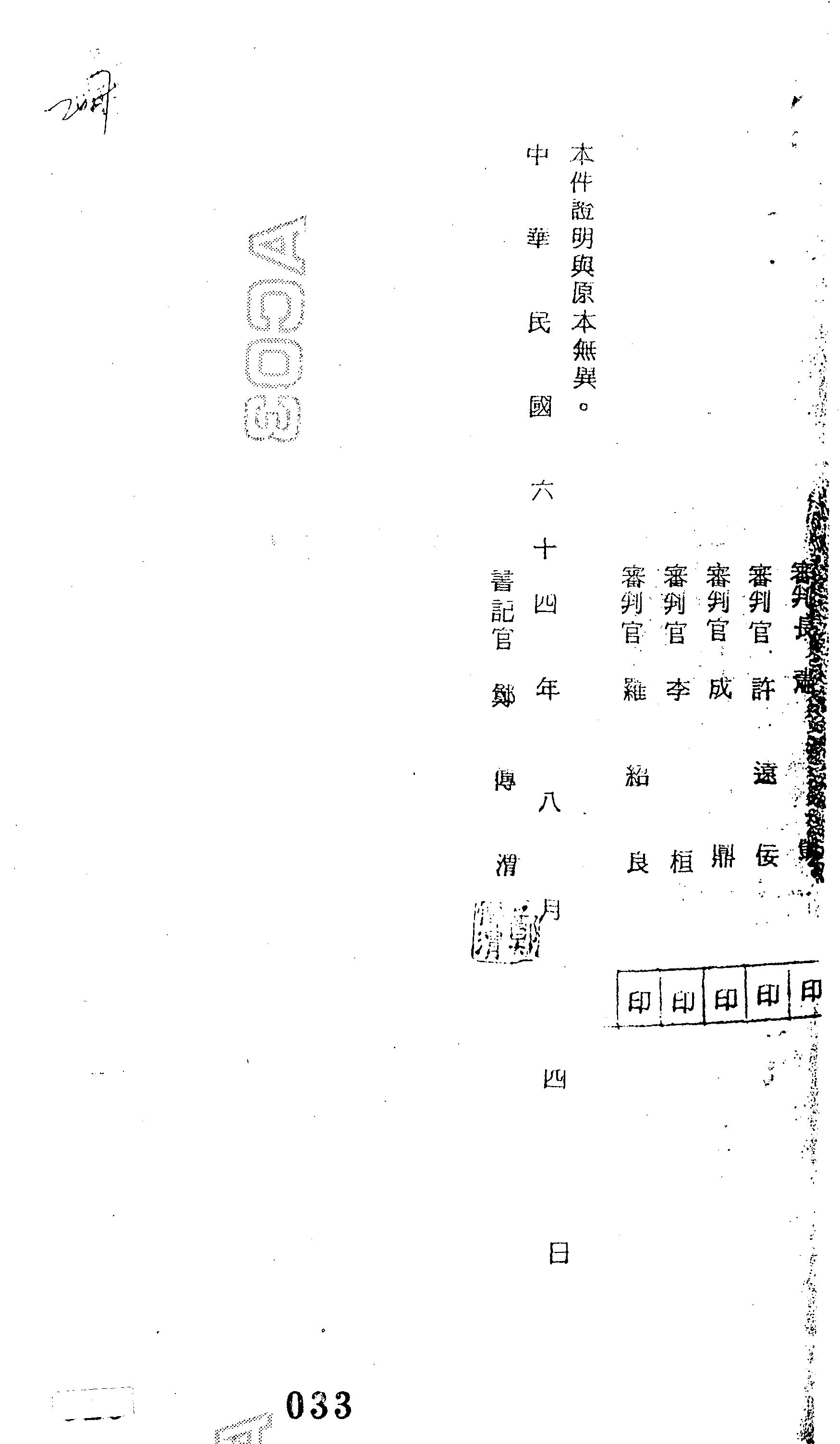 - 裁判書字號:(64)覆高曉暘字第0014號