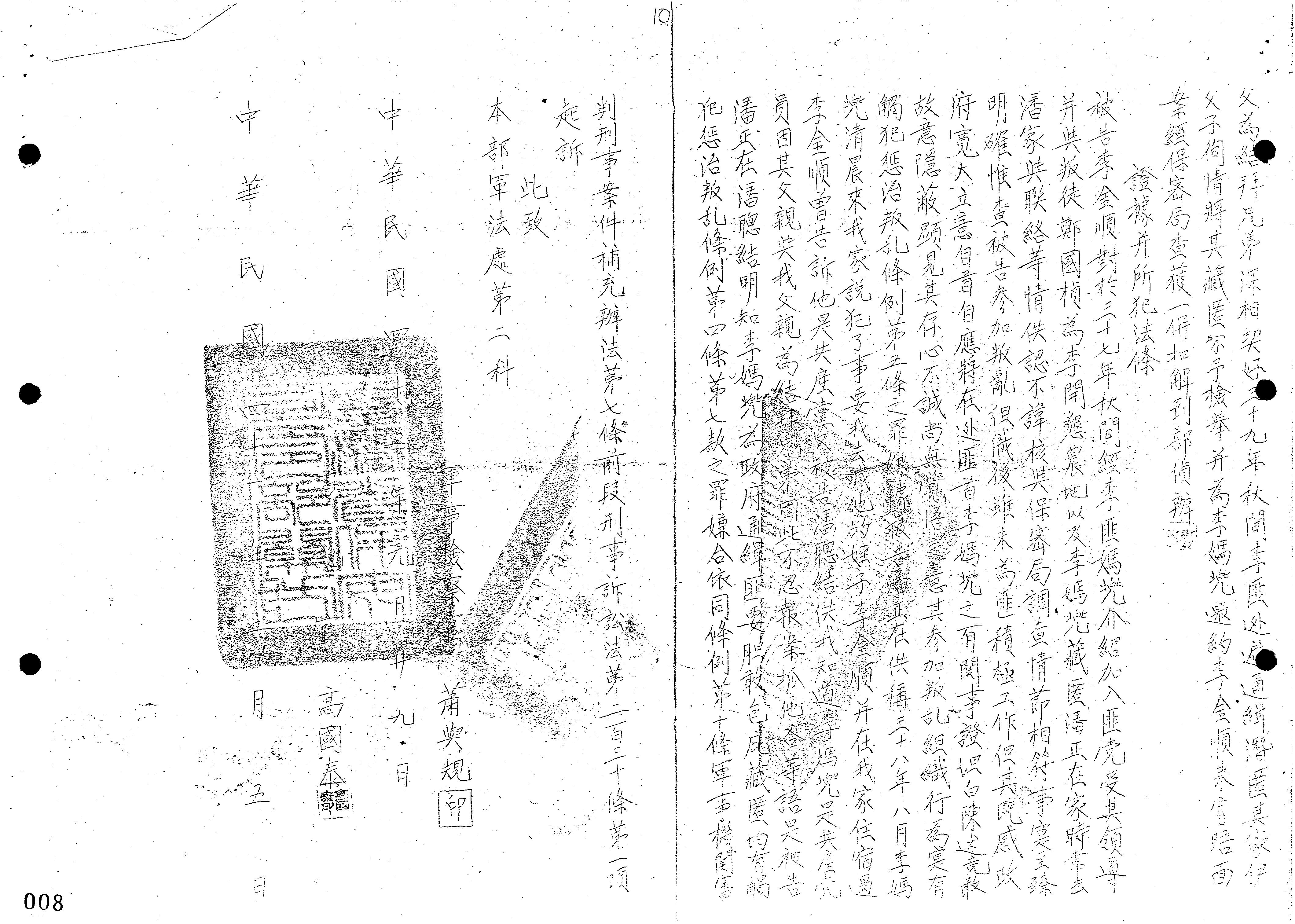 法條:懲治叛亂條例第10條;軍事機關審判刑事案件補充辦法第7條前段;刑事訴訟法第230條第1項