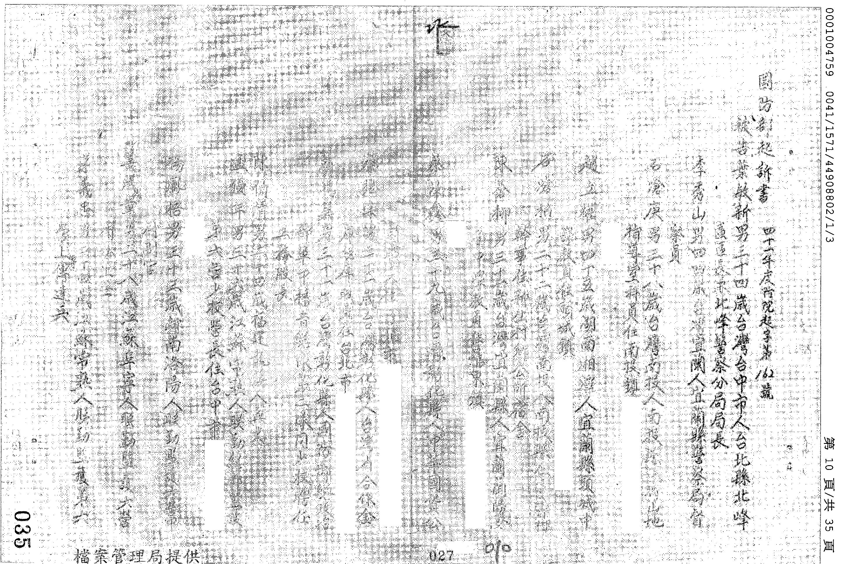 - 裁判書正題名: 國防部41年防院起字第0162號起訴書
