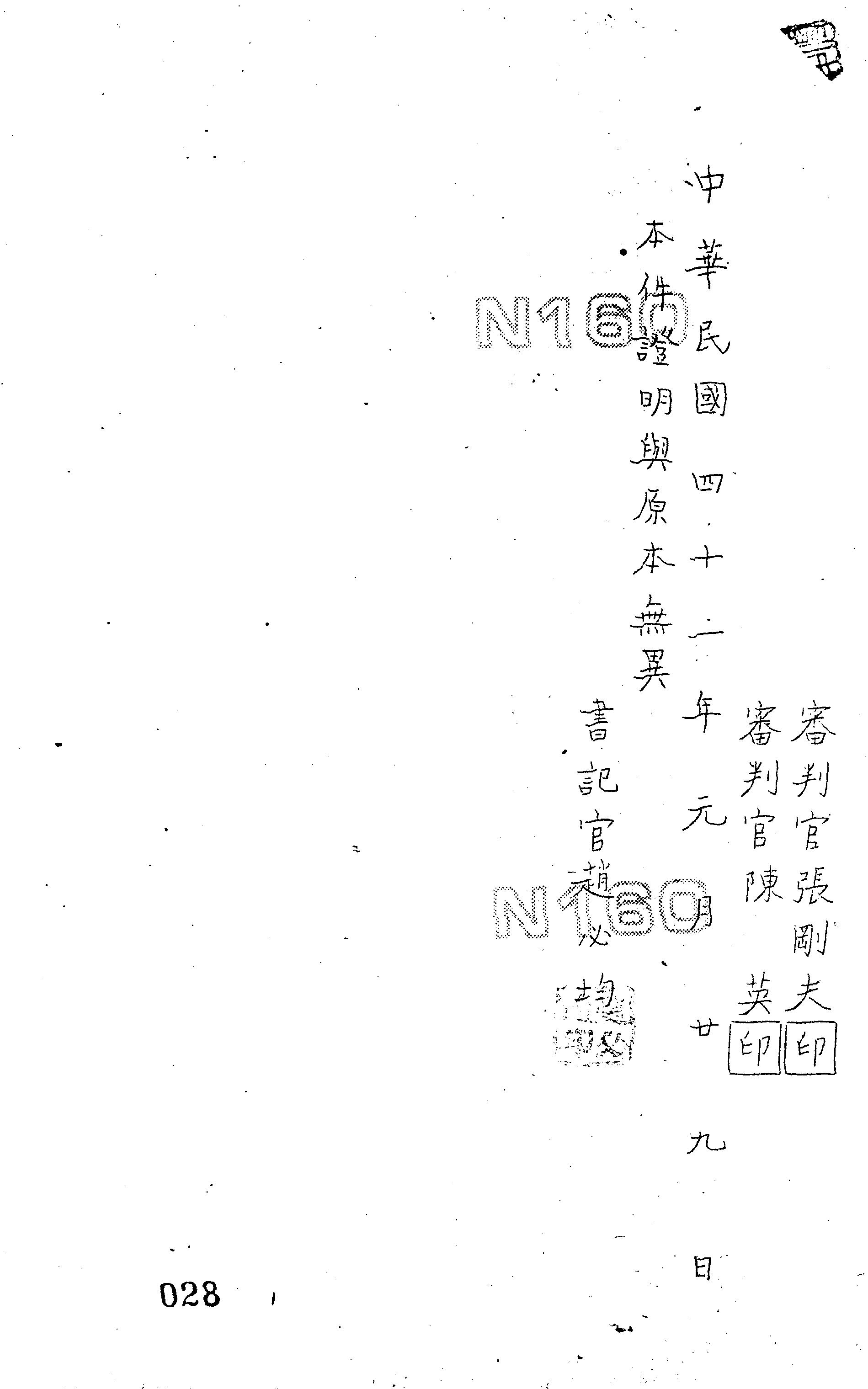 國防部41年防隔字第0028號判決書