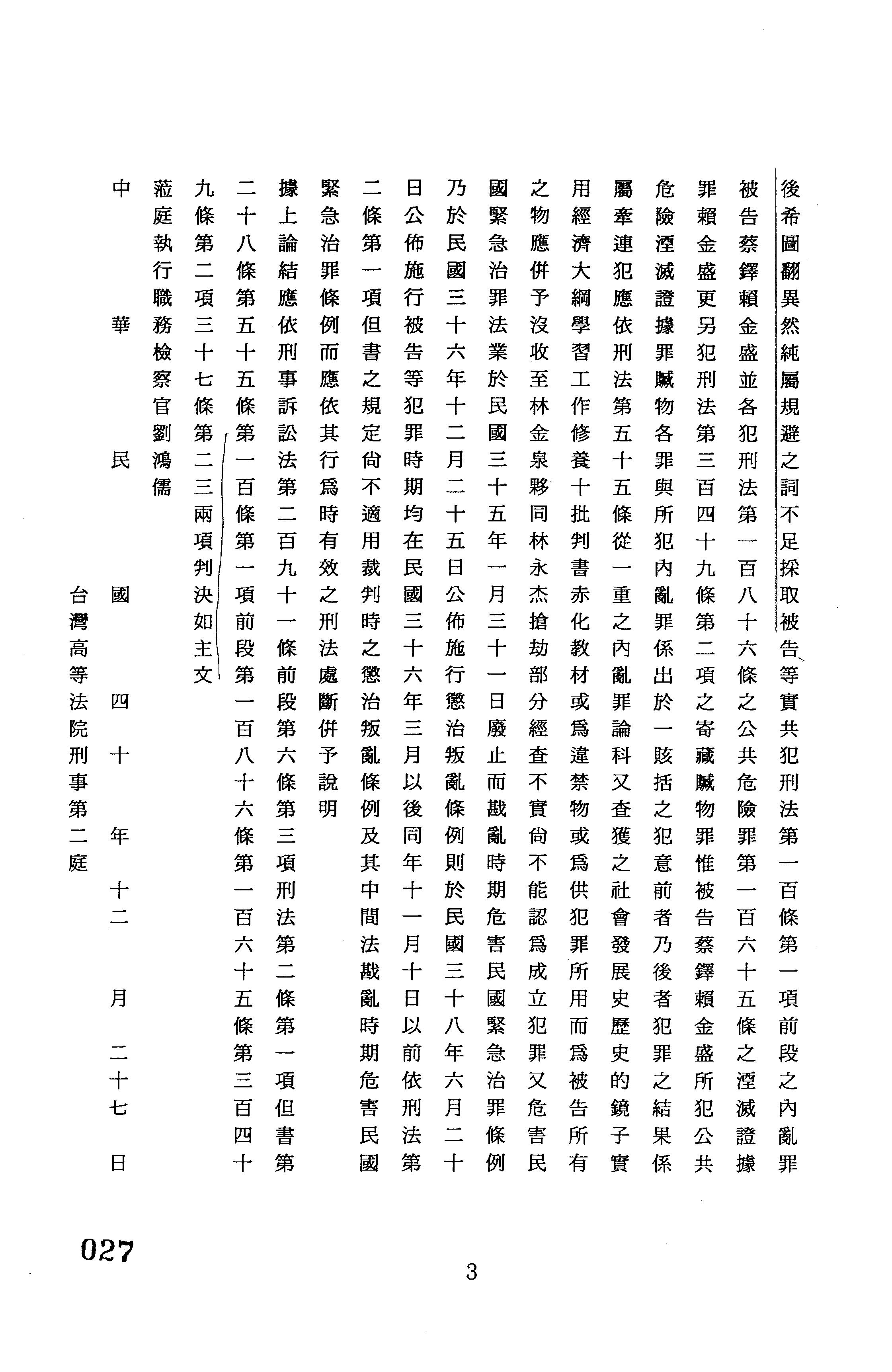 - 法條:刑事訴訟法第291條前段、第6條第3項;刑法第2條第1項但書、第28條、第55條、第100條第1項前段、第186條、第165條、第349條第2項、第37條第2項、第37條第3項