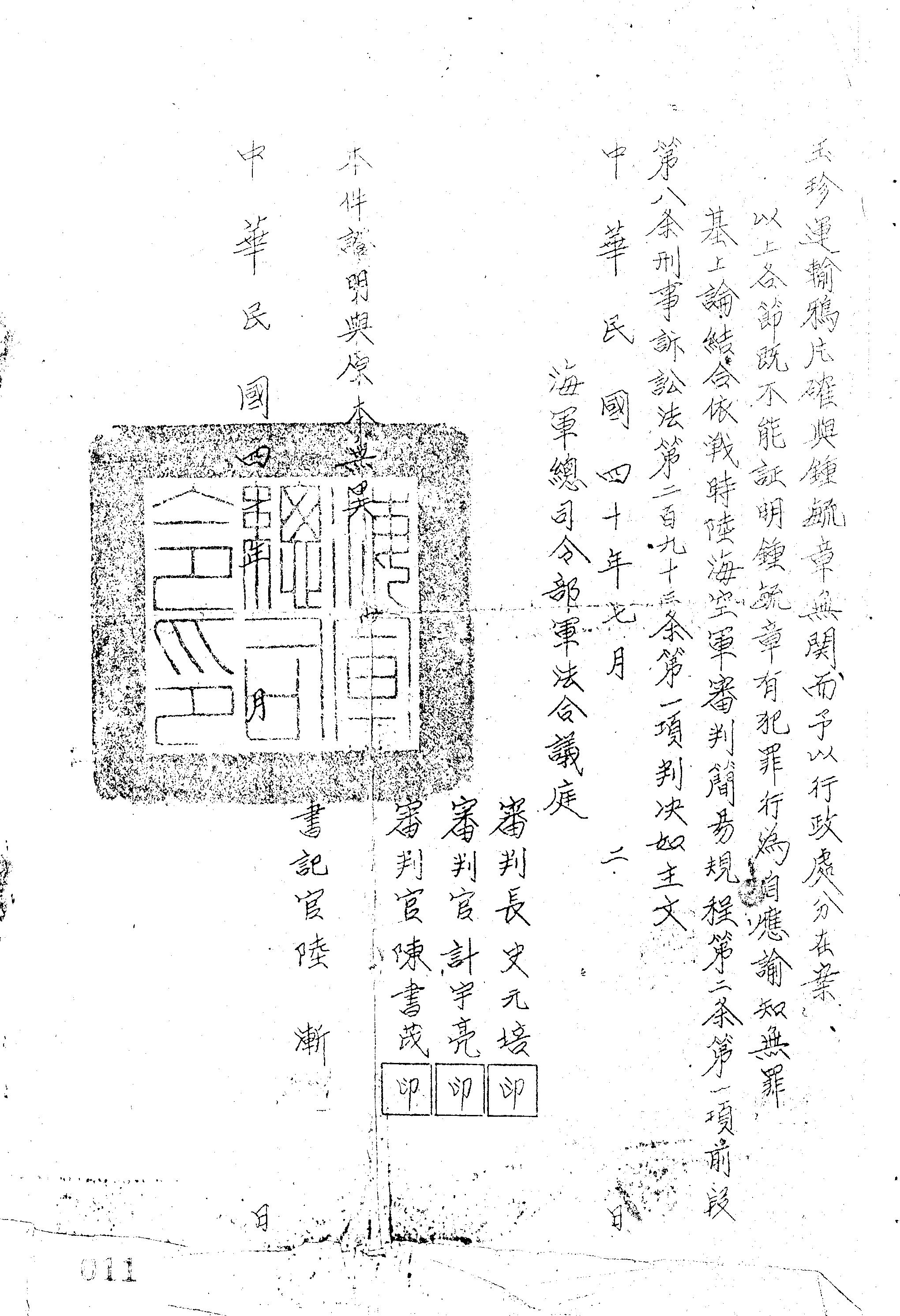 海軍總司令部40年穌嘉字第1477號判決書