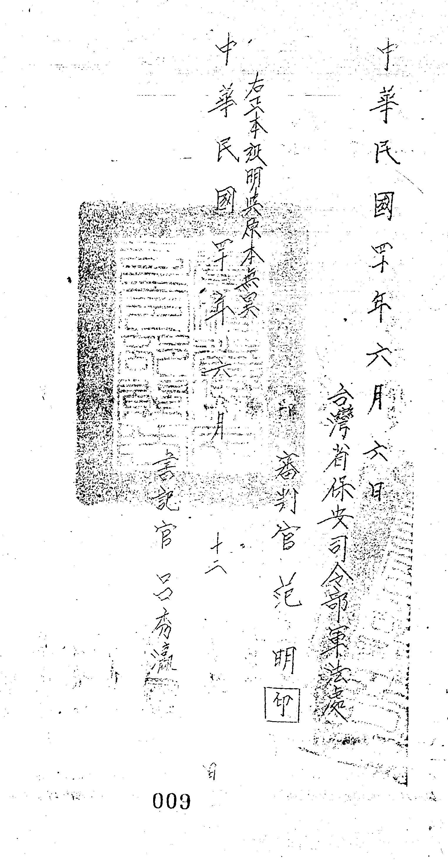 - 裁判書正題名: 臺灣省保安司令部40年安潔字第2476號判決書