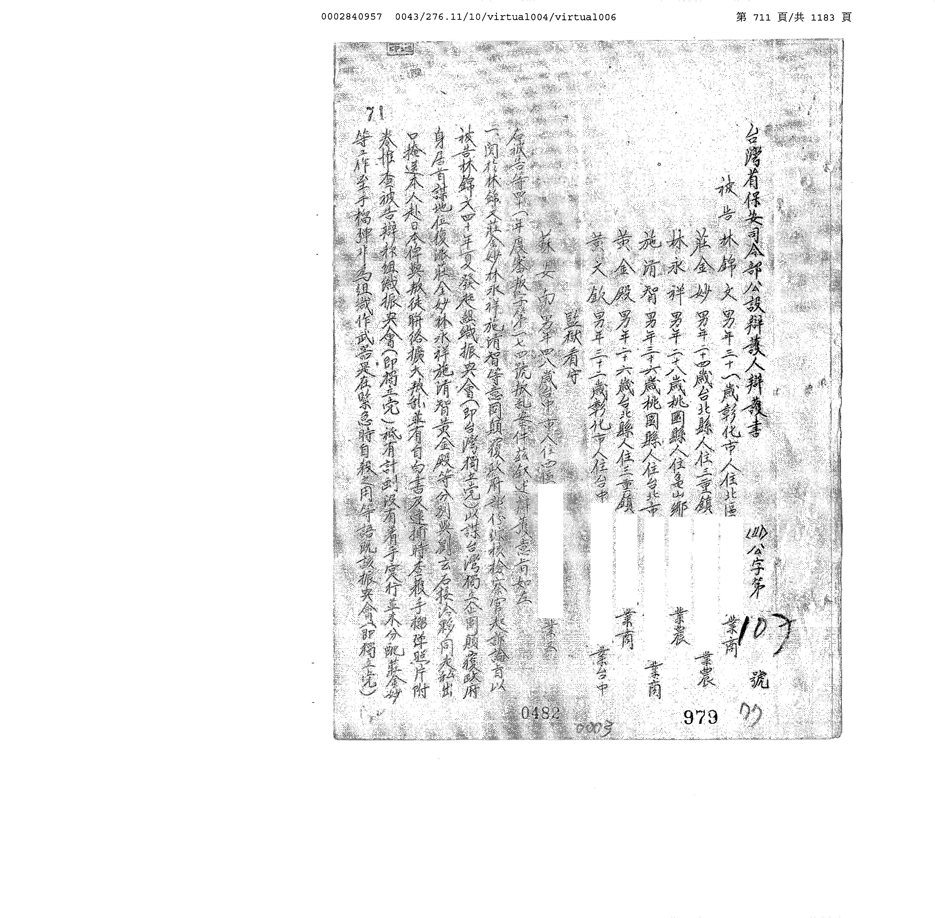 臺灣省保安司令部41年公字第0107號公設辯護人辯護書