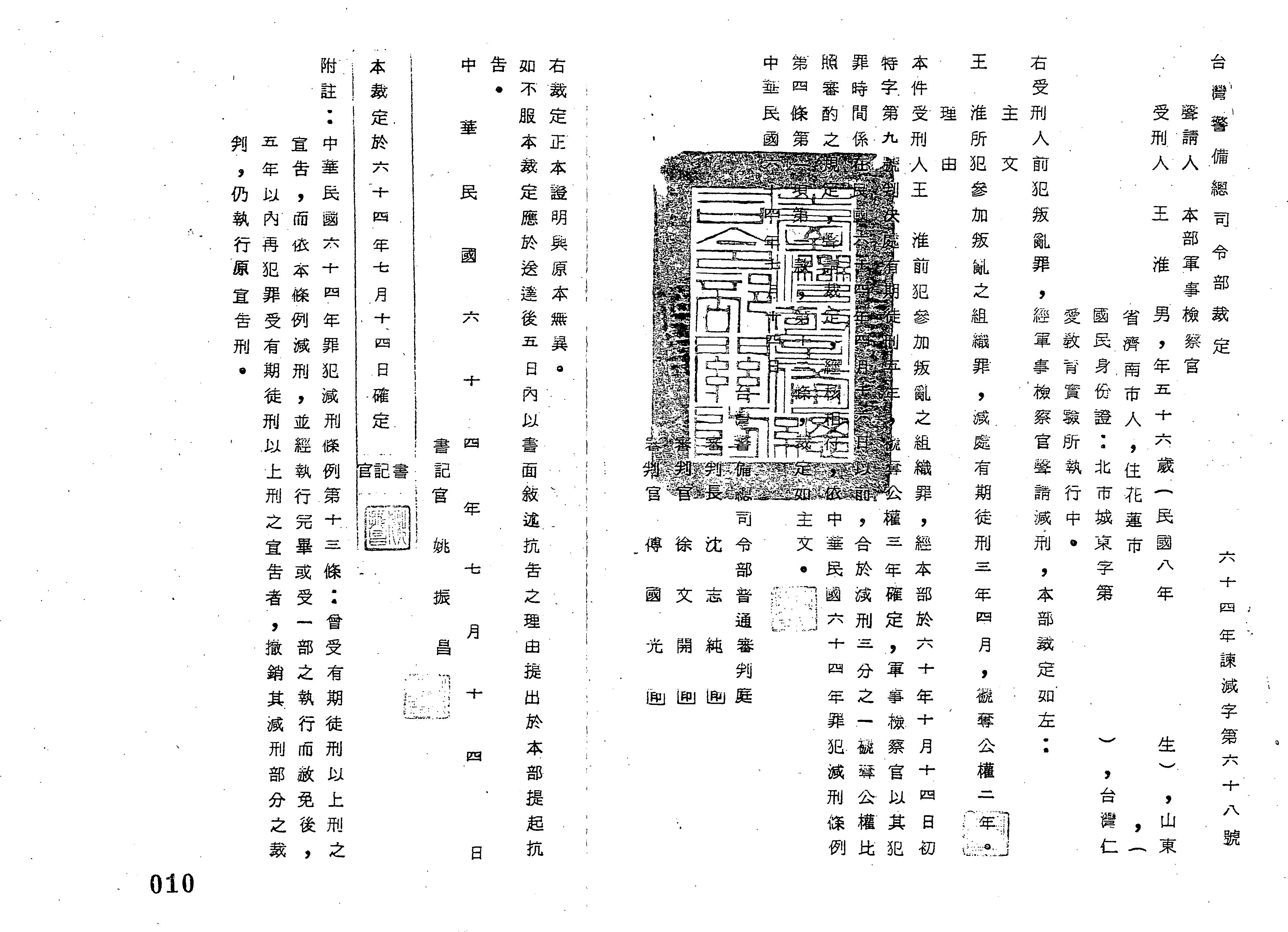 裁判書主文/要旨:王淮所犯「參加叛亂之組織罪」,減處有期徒刑3年4月,褫奪公權2年。