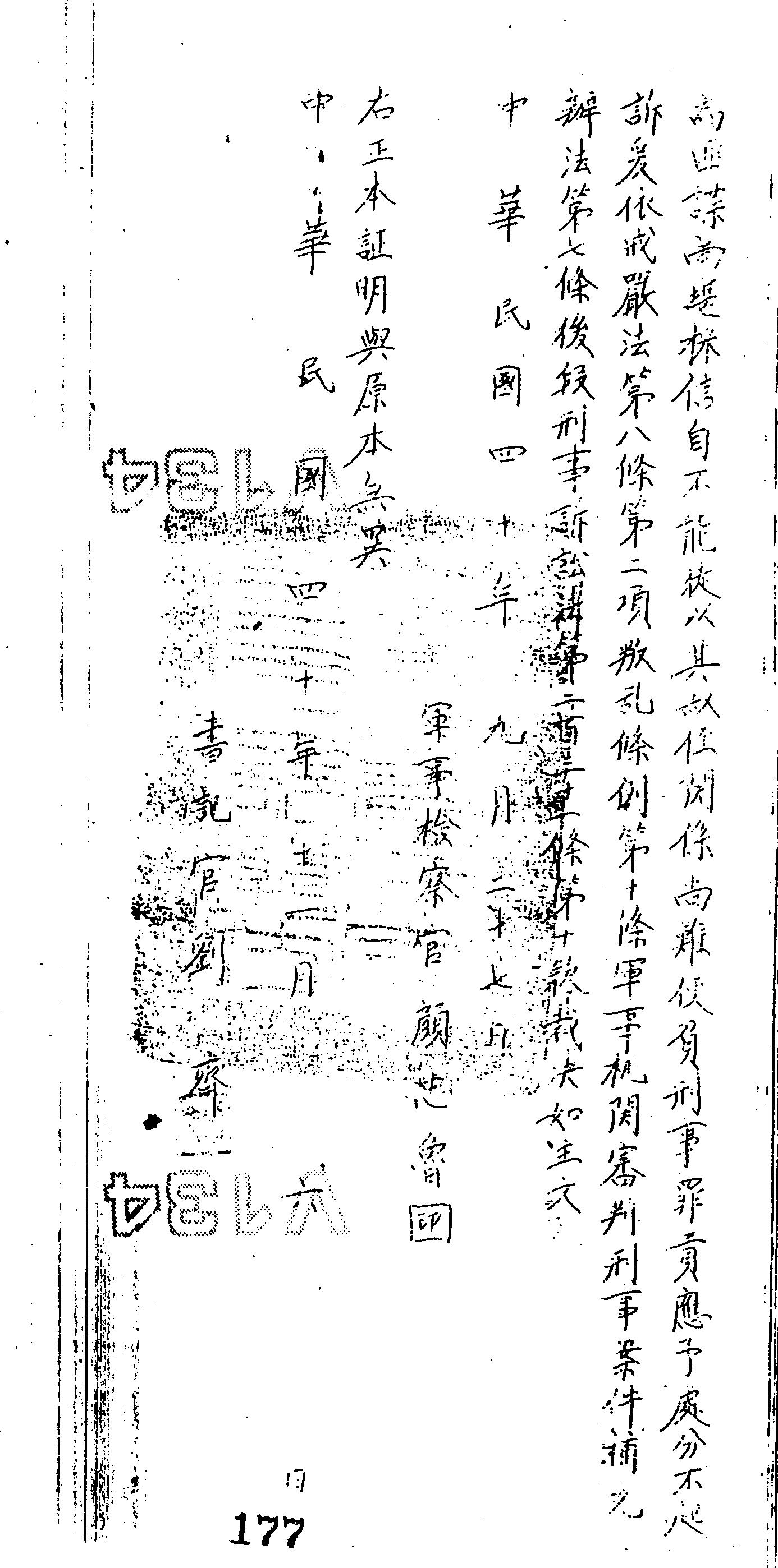 臺灣省保安司令部40年安澄字第4436號軍事檢察官裁決書