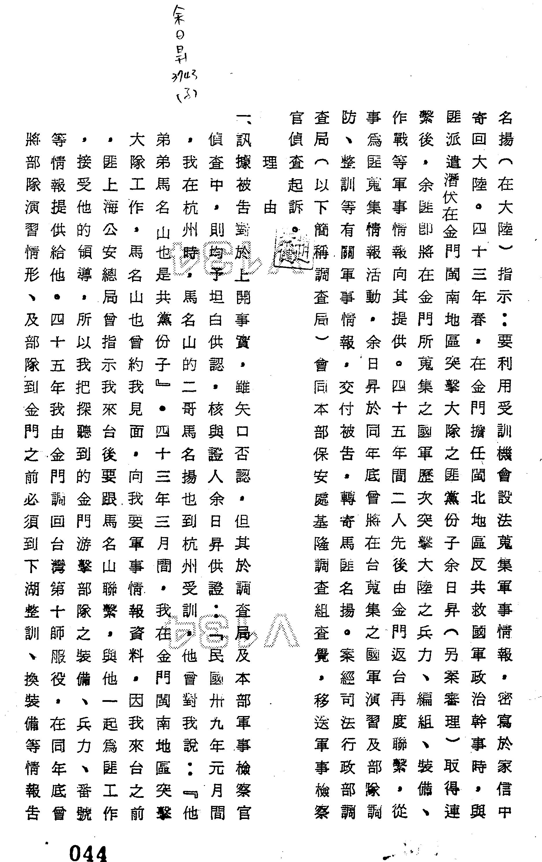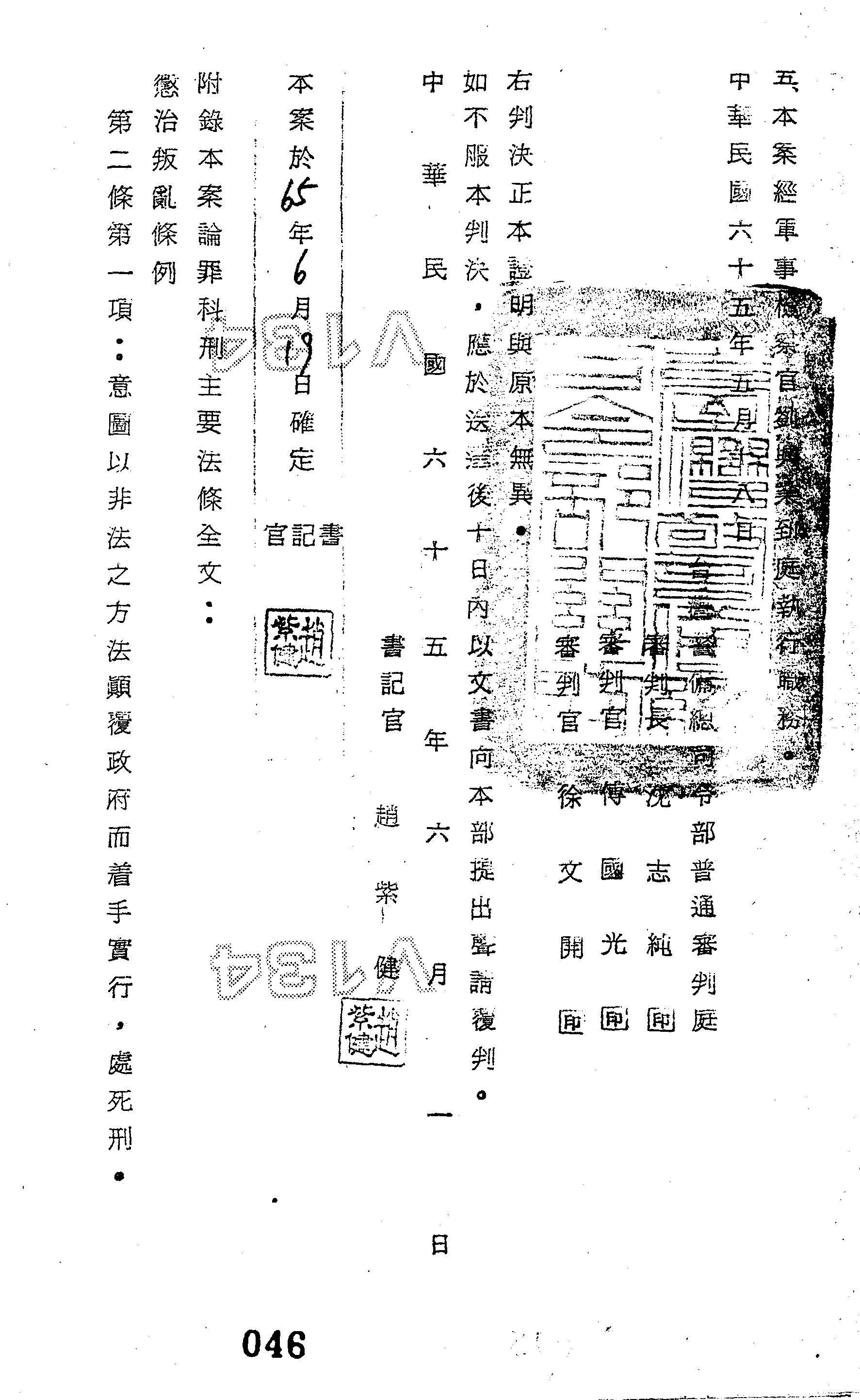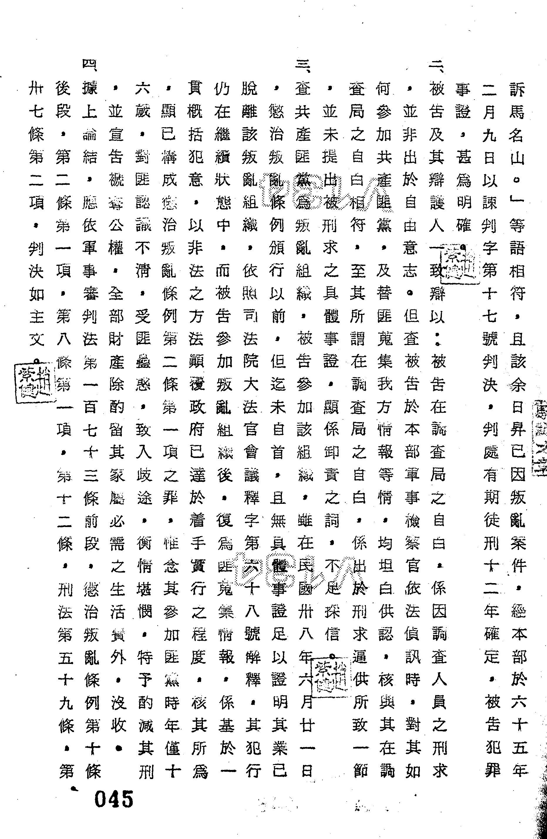 法條:軍事審判法第173條前段;懲治叛亂條例第10條後段、第2條第1項、第8條第1項、第12條;刑法第59條、第37條第2項