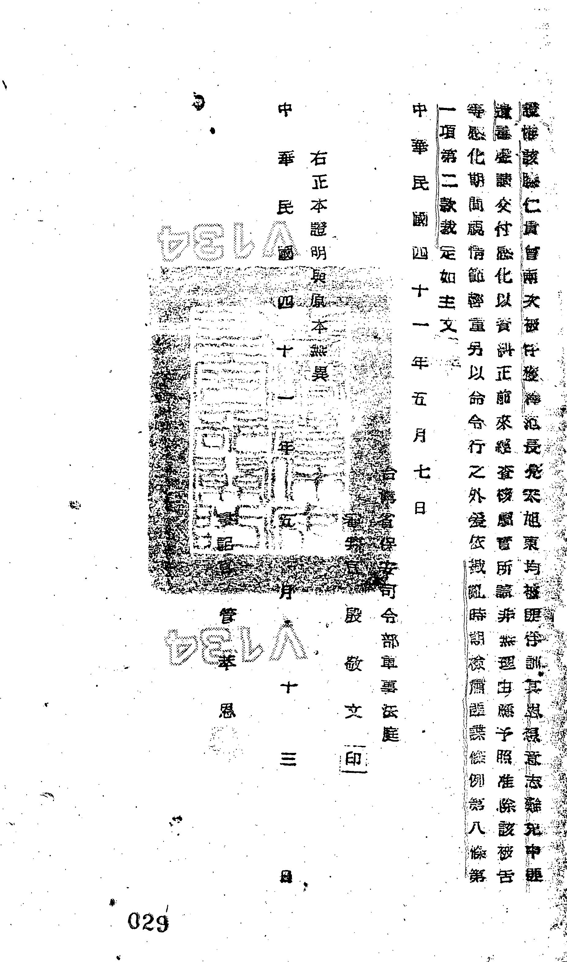 臺灣省保安司令部41年安潔字第1605號裁定書