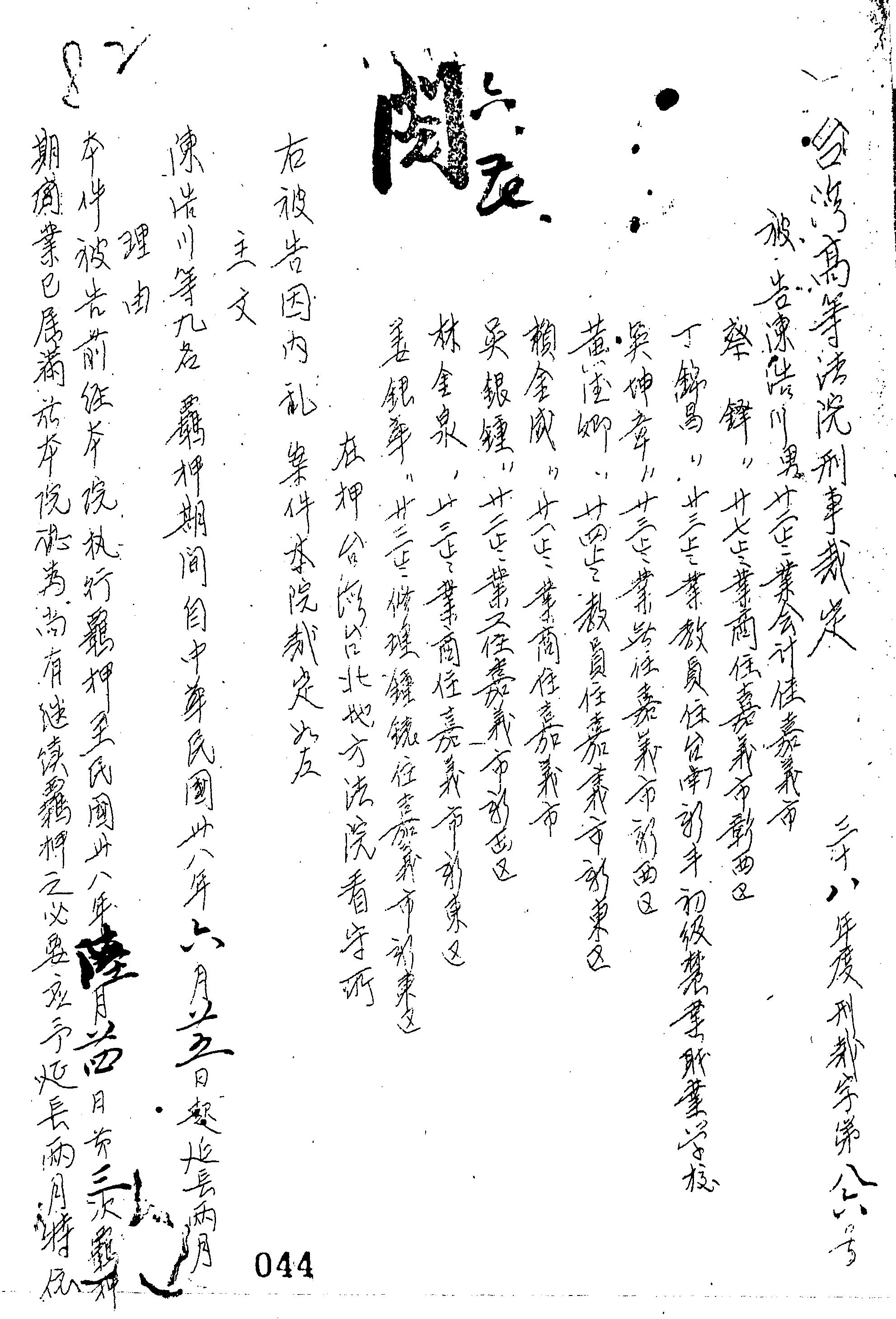 審理機關:臺灣高等法院