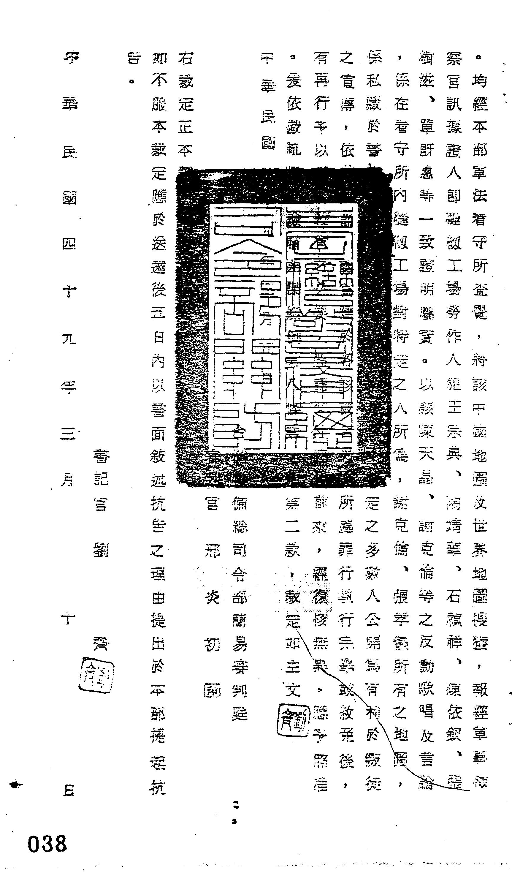 臺灣警備總司令部49年警審聲字第0005號裁定書