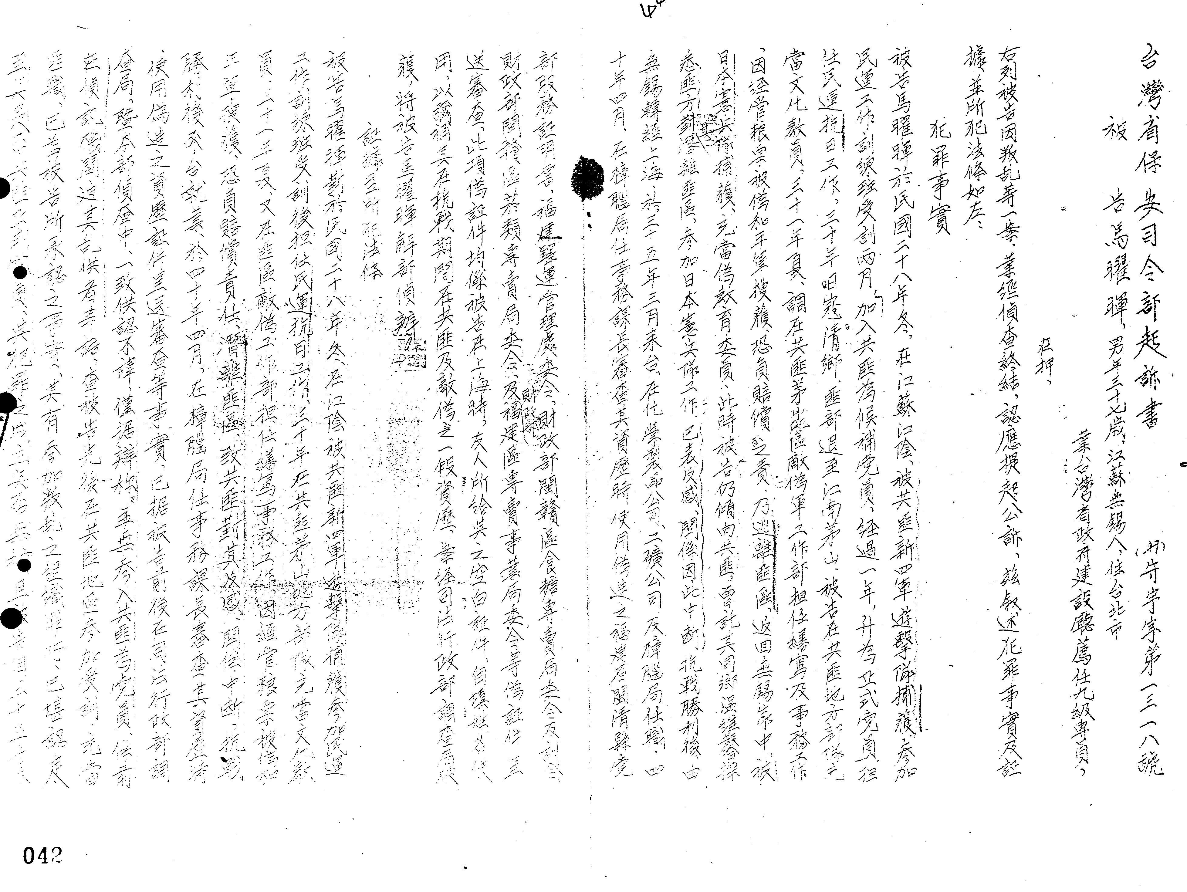 臺灣省保安司令部47年守宇字第1318號起訴書