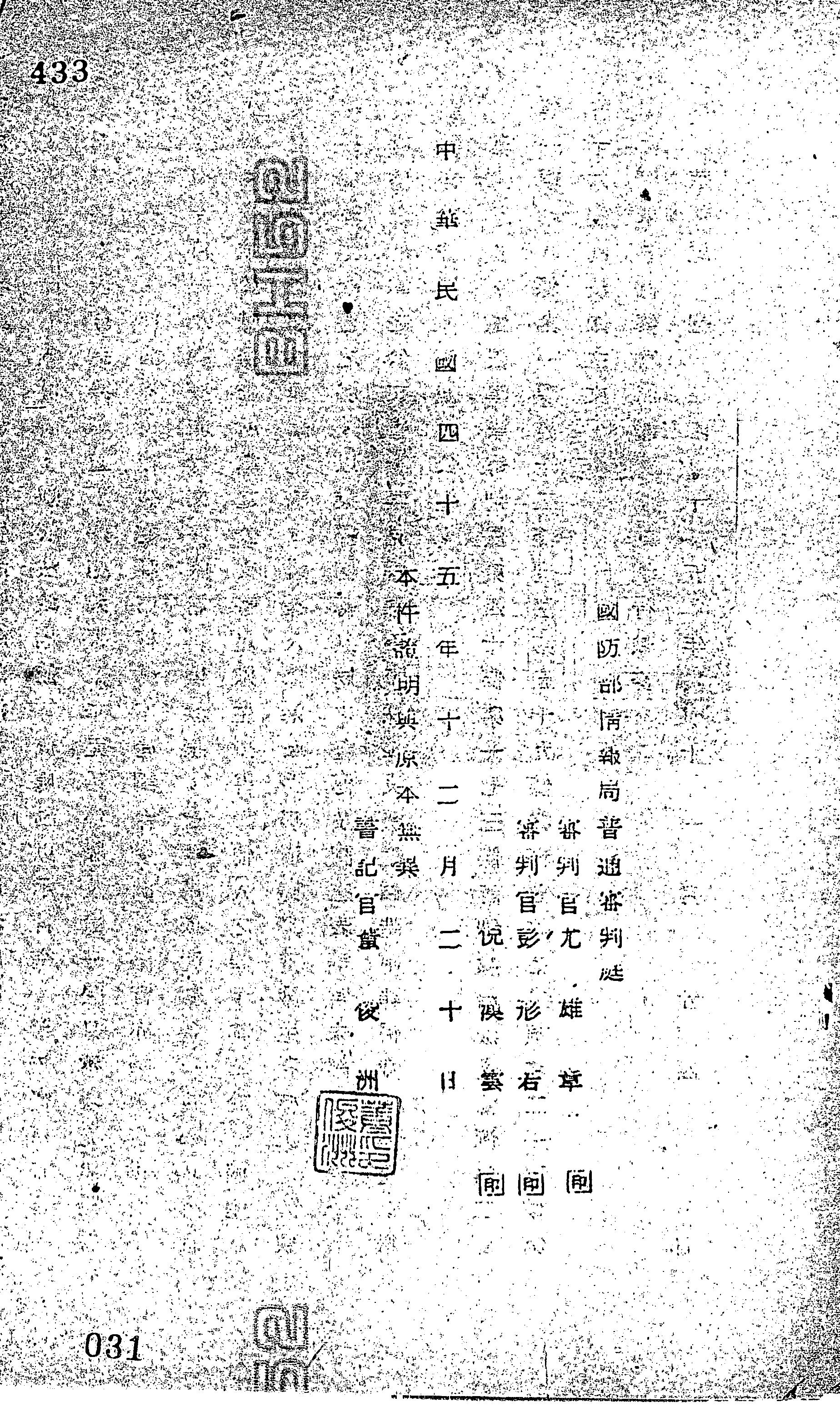 - 法條:軍事審判法第40條、第173條前段;懲治叛亂條例第2條第1項、第8條第1項、第12條;刑法第59條、第37條第2項、第214條、第56條